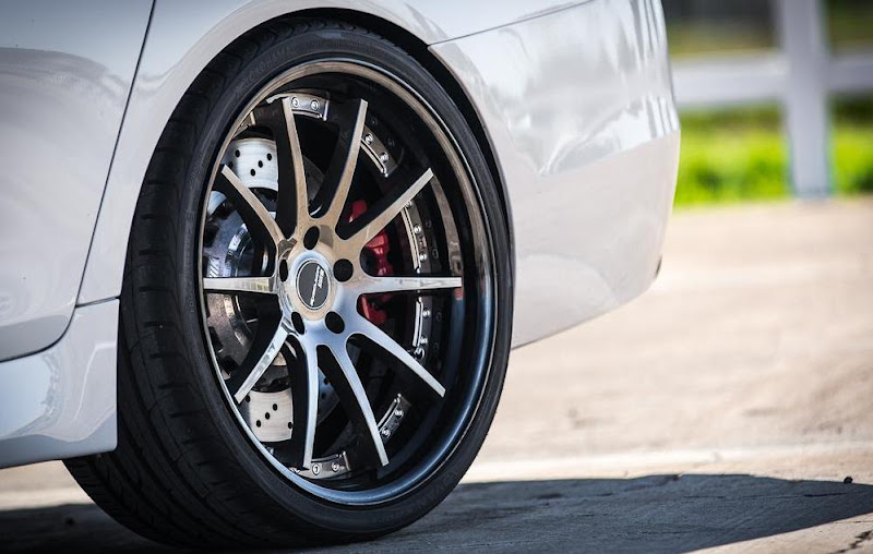 輪圈方面,選用少見的SSR CV07 21吋前後配輪圈,中心採用銅色塗裝,爪的內側與外圈則為黑色塗裝,擁有獨特的造型與高階的質感,再搭配H&R短彈簧將車身降低,替這台F10 M5外觀添加不少分數。