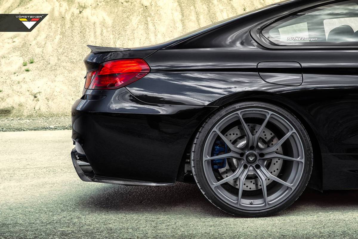 今天帶給各位一部由改裝廠Turner Motorsport所操刀的黑色塗裝BMW F13 M6雙門跑車,外觀選用來自Vorsteiner的碳纖維套件,包含碳纖維前下巴、側裙組、後下擾流板與碳纖維鴨尾翼等部品,另外換裝同樣來自Vorsteiner、型號VSE-003的單片式鍛造輕量化輪圈,尺寸為前21x9.5J、後21x11J的前後配設定,搭配Michelin Pilot Super Sport高性能跑胎,另外再將水箱護罩與前後保桿美規燈組等施以燻黑處理,整體搭配起來肅殺感頗重,質感非凡。