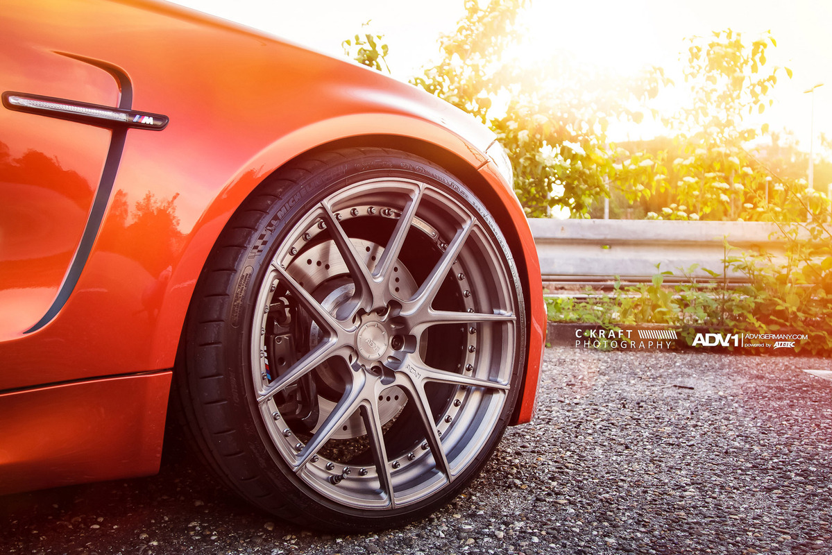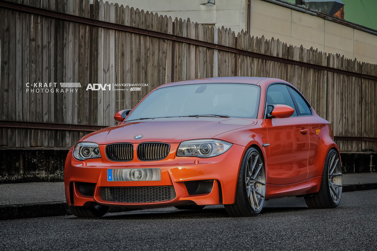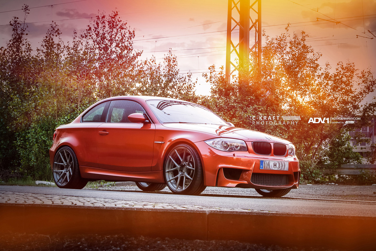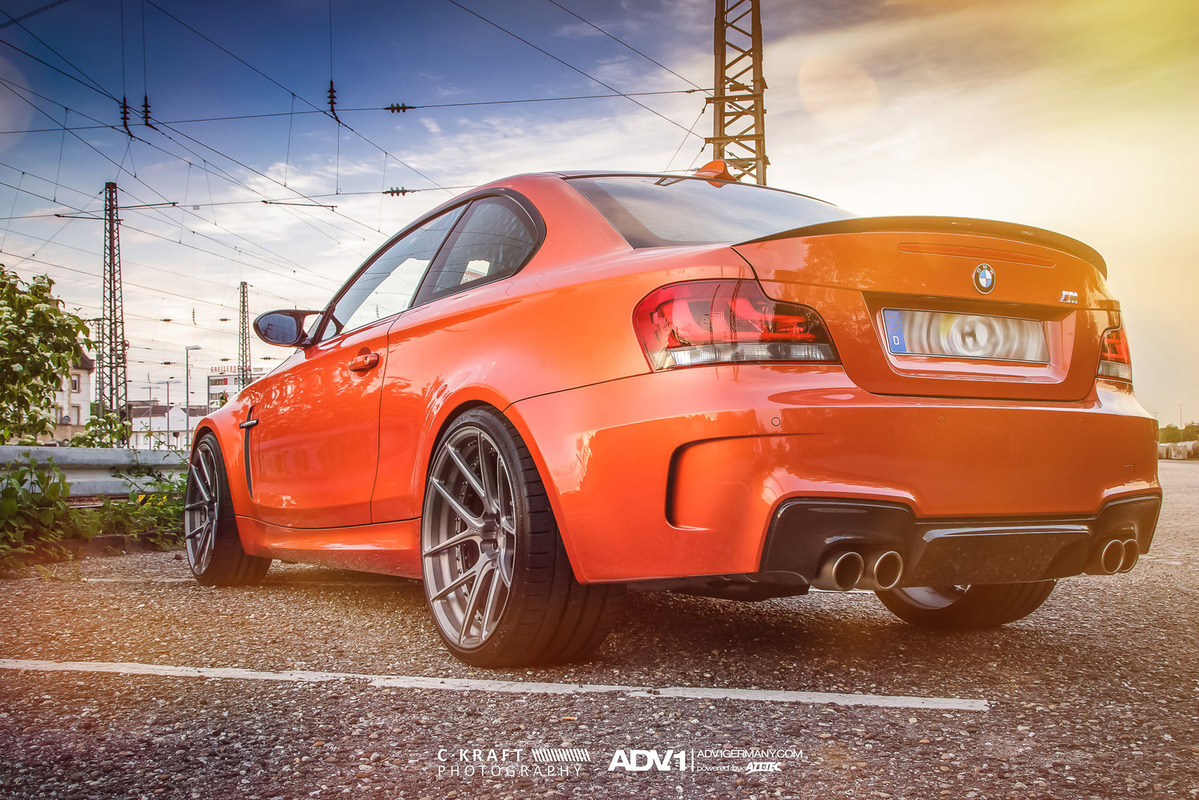 今天帶給各位由輪圈品牌ADV.1 Wheels所提供的橘紅色塗裝BMW E82 1M Coupe,選用型號ADV5.0 MV2 SL的五幅雙肋式樣槍灰色塗裝輪圈,尺寸為前20x9J、後20x11J的前後配設定,搭配前245/30R20、後285/25R20的跑胎,另外換裝KW V3高低軟硬可調式避震器組將車身降低,搭配加裝的M Performance碳纖維後擾流尾翼與車內的BMW Performance可調式賽車座椅等精緻部品,讓這部高人氣小鋼砲展現出高質感的迷人風采。