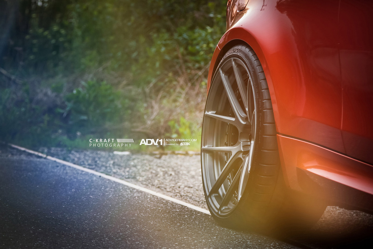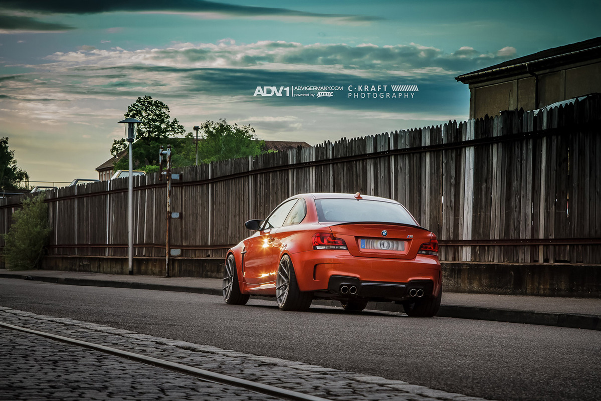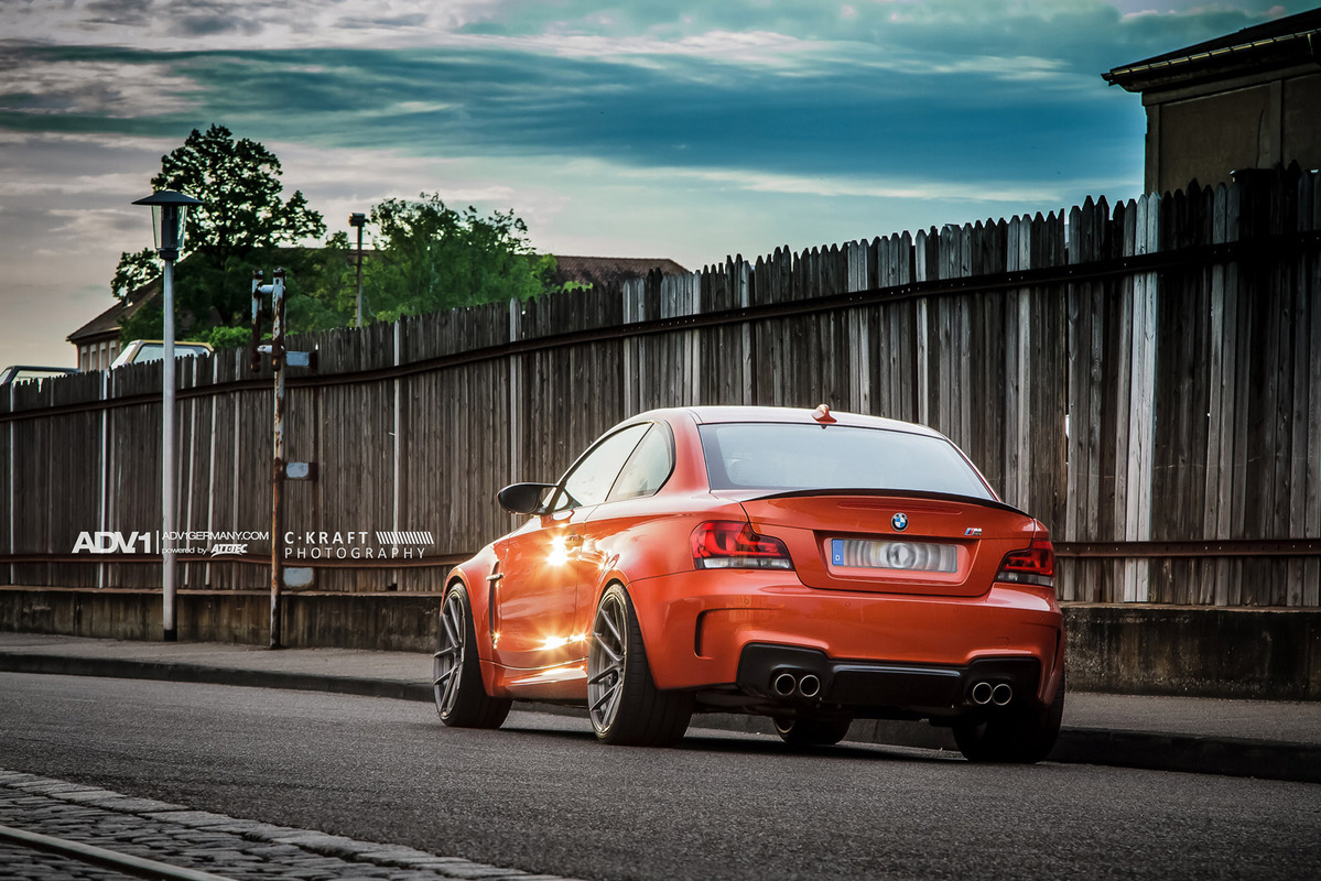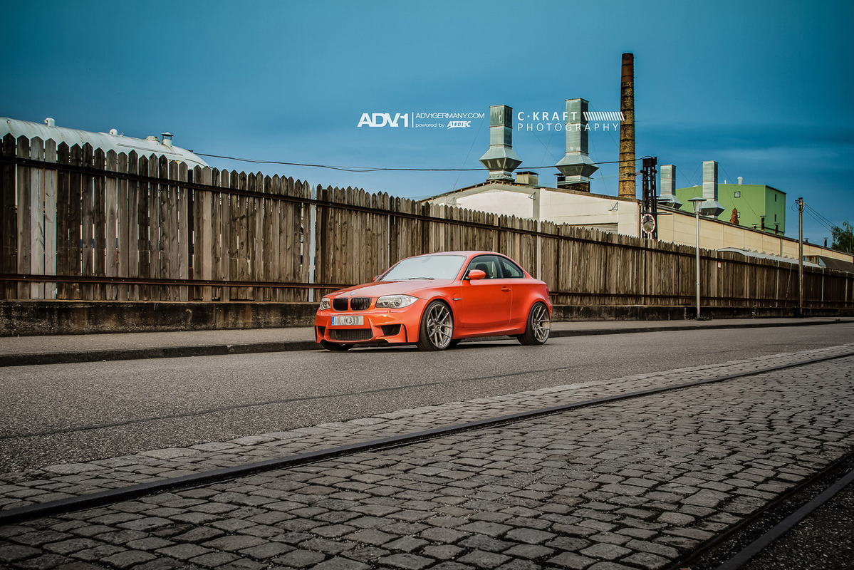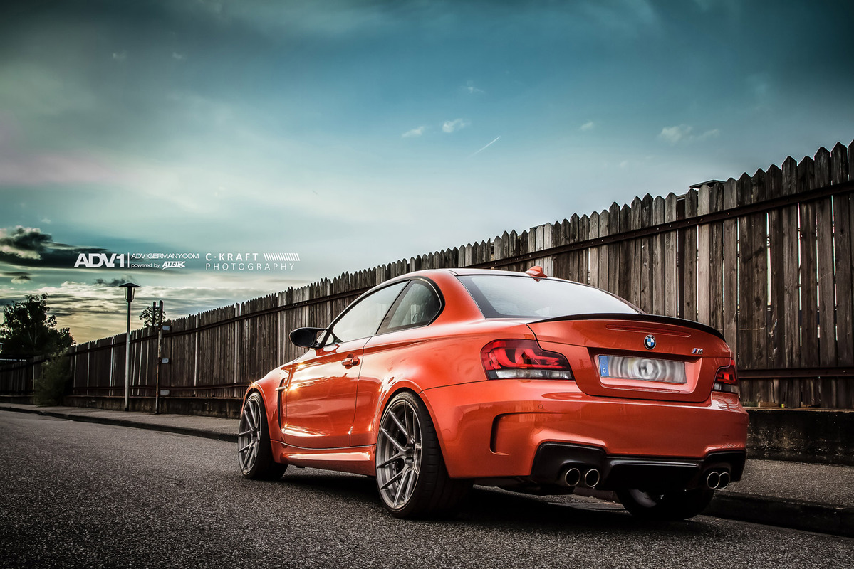 今天帶給各位由輪圈品牌ADV.1 Wheels所提供的橘紅色塗裝BMW E82 1M Coupe,選用型號ADV5.0 MV2 SL的五幅雙肋式樣槍灰色塗裝輪圈,尺寸為前20x9J、後20x11J的前後配設定,搭配前245/30R20、後285/25R20的跑胎,另外換裝KW V3高低軟硬可調式避震器組將車身降低,搭配加裝的M Performance碳纖維後擾流尾翼與車內的BMW Performance可調式賽車座椅等精緻部品,讓這部高人氣小鋼砲展現出高質感的迷人風采。