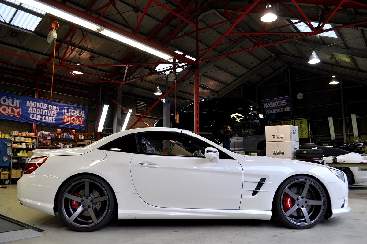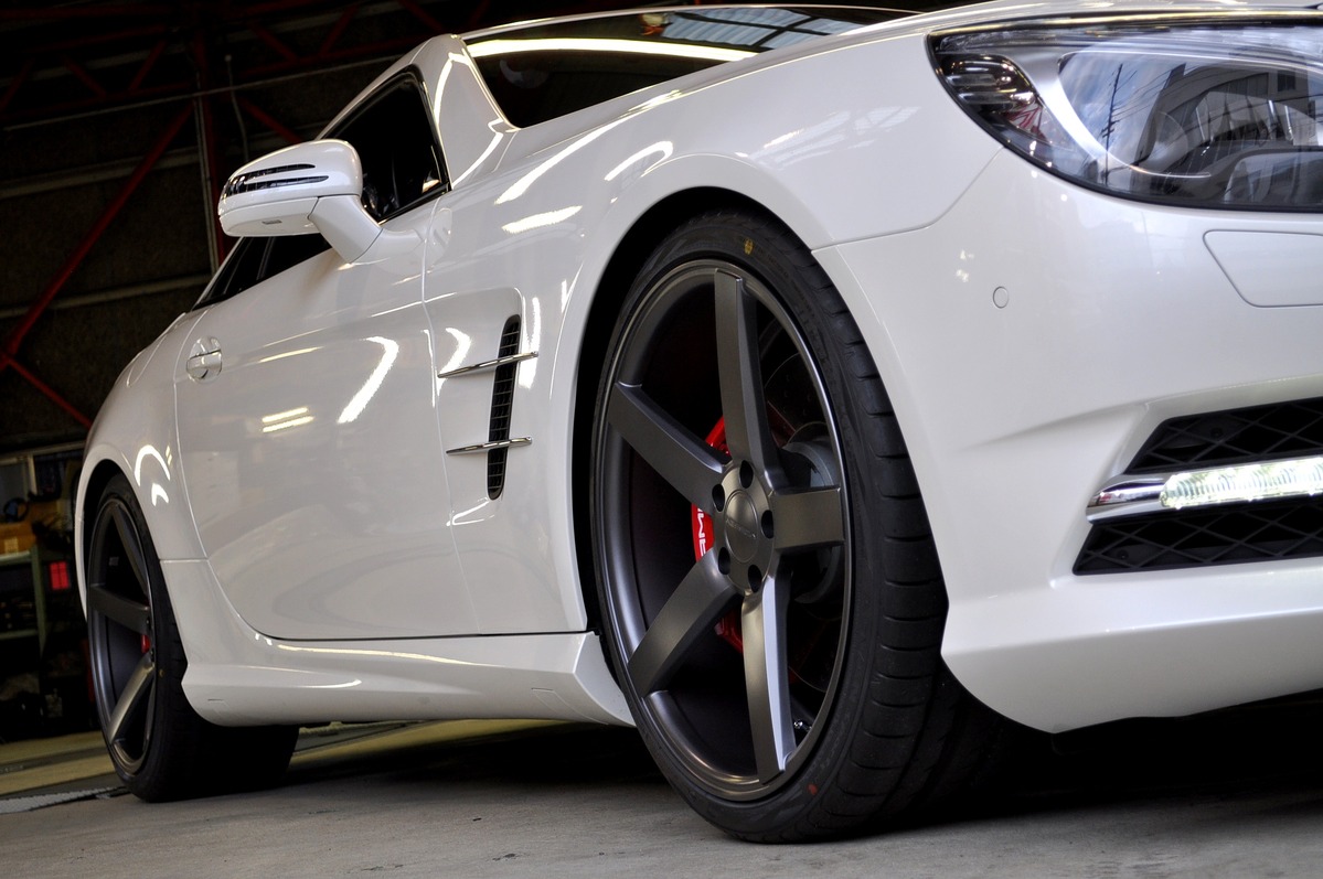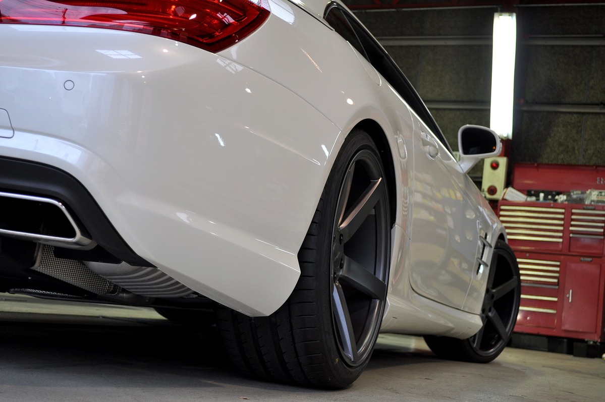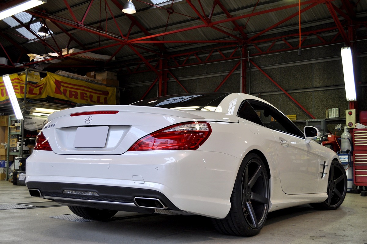今天帶給各位一部由日本改裝廠Bond Osaka所操刀的白色塗裝Mercedes Benz R231 SL550(部分地區名稱為550),選用來自Vossen Wheels、型號VVS CV3的槍灰色輕量化輪圈,尺寸為前20x9J、後20x11J的前後配設定,搭配前255/30R20、後285/30R20的Yokohama Advan Sport V105高性能跑胎,再透過專用短彈簧的換裝將車身降低,配上原廠AMG空力套件,徹底讓新世代SL-Class的優雅動感風情毫不掩飾地流露。