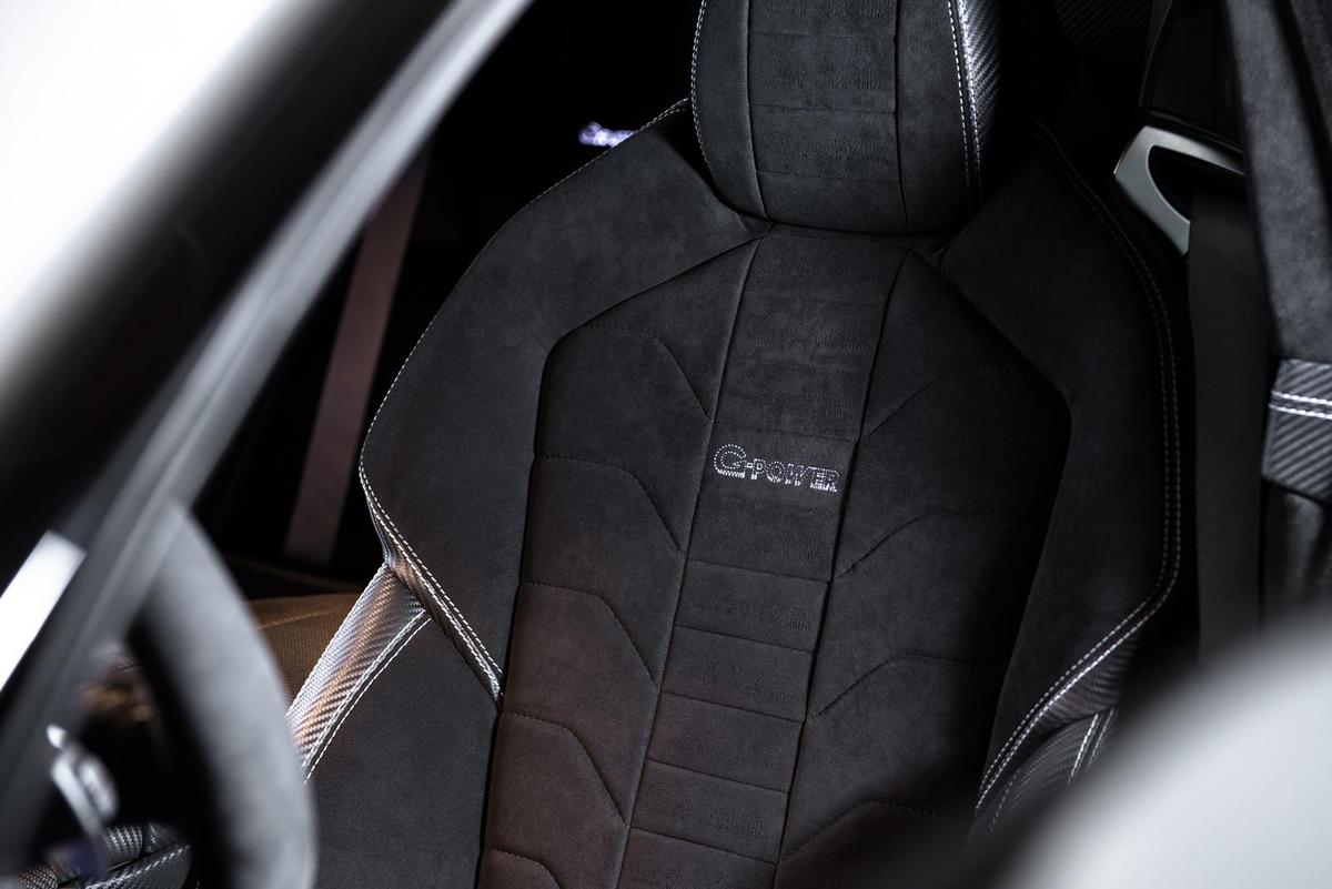 除了動力提升之外,G-Power也為這部四門跑車換裝自家型號Hurricane RR的鍛造21吋輪圈搭配前255/30R21、後295/25R21的Michelin Pilot Super Sport高性能跑胎,再搭配高低軟硬可調式避震器組與強化型煞車套件,讓這部M6 Gran Coupe的戰鬥指數再向上提升。另外,G-Power在內裝部分更是好料用盡,植入高檔碳纖維飾板、碳纖維紋路皮革、頂級真皮與麂皮等部品,再搭配能夠整合智慧平板電腦的影音系統,質感極佳。