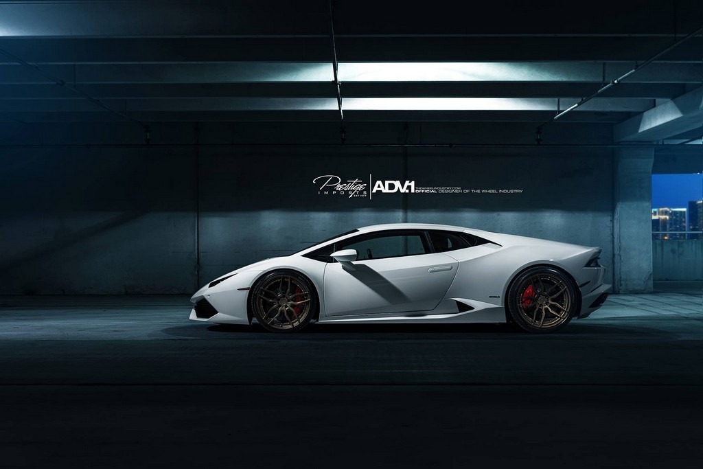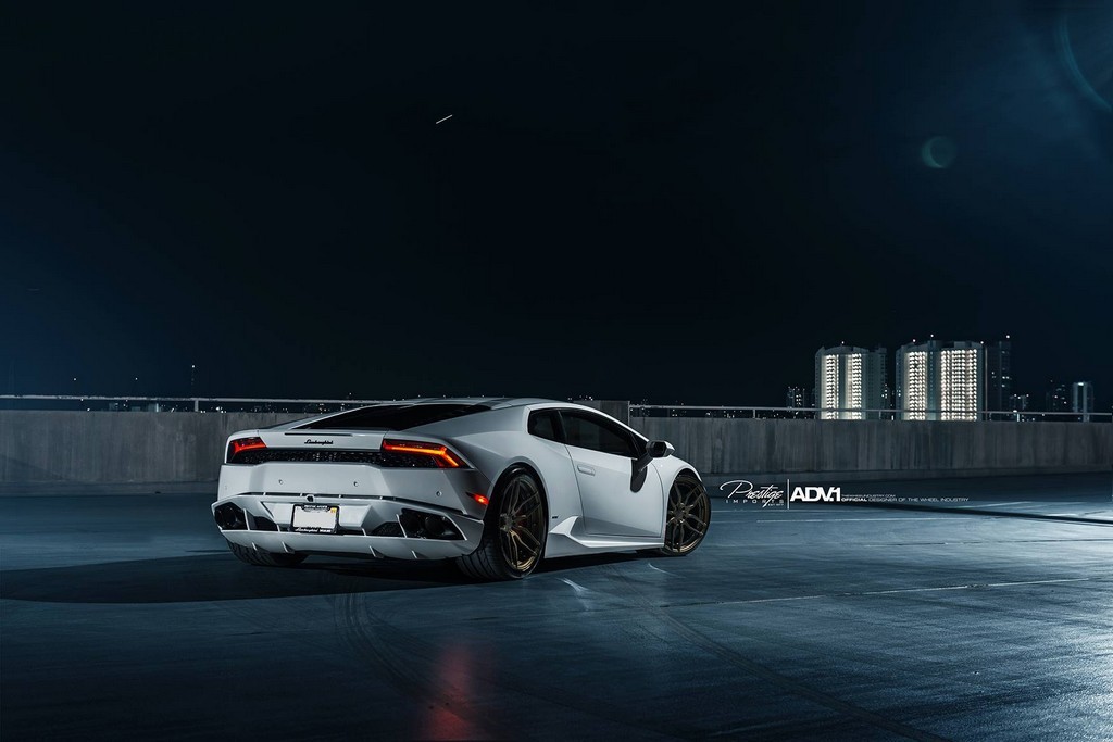 在拿到熱騰騰的全新Lamborghini Huracán LP610-4後,知名輪圈品牌ADV.1 Wheels的研發團隊可說幾乎是興奮得睡不著覺,與美國邁阿密(Miami, USA)代理商Prestige Imports聯手,迫不及待地在第一時間將自家品牌輪圈裝上這部嶄新蠻牛身上。作為官方發表的首部改裝版本Lamborghini Huracán LP610-4,他們選擇型號ADV005 TS CS的輕量化款式,圈面採用消光古銅色塗裝,搭配Bianco Monocerus白色塗裝之車身,同時將後下擾流板施以車身同色處理,而為了強化視覺效果,也換裝短彈簧將車身降低,讓全新的Huracán更具跑格。