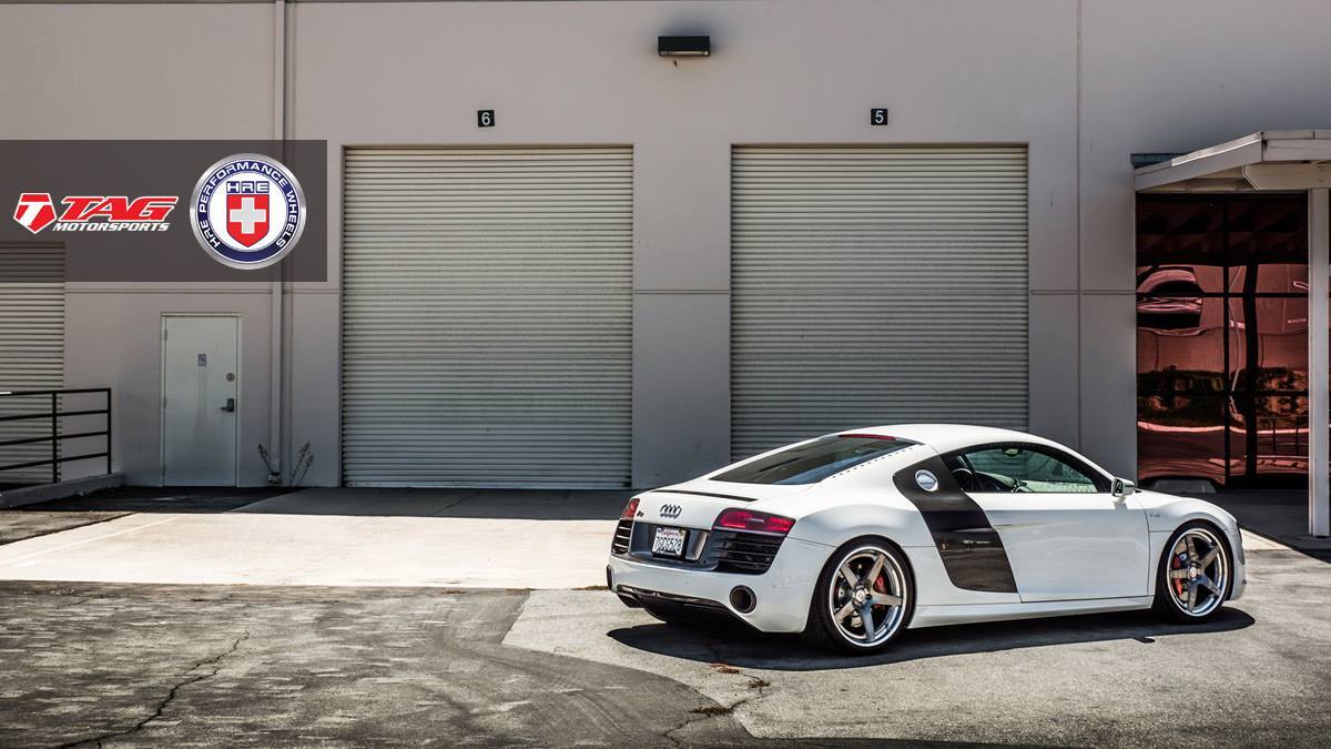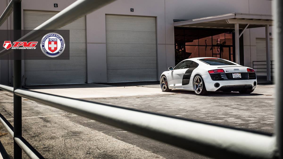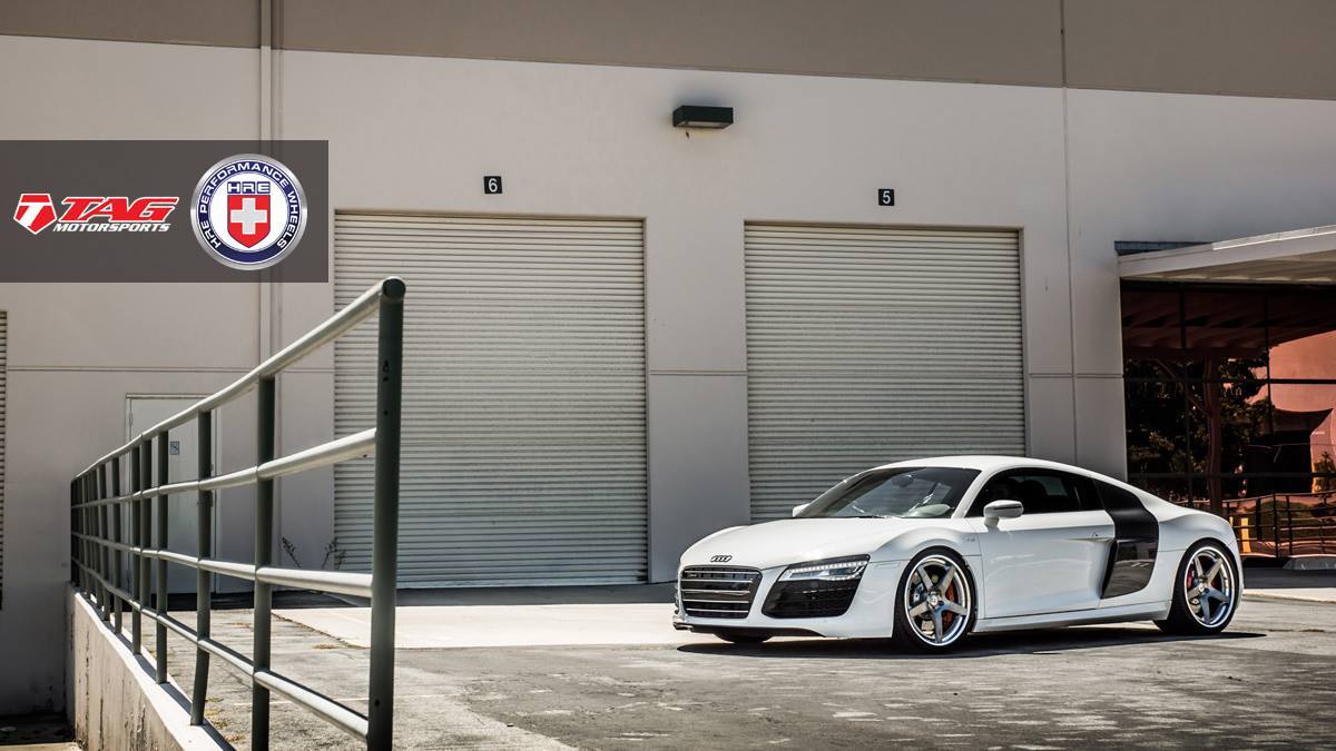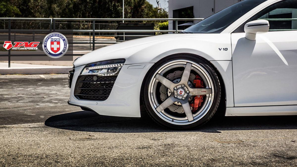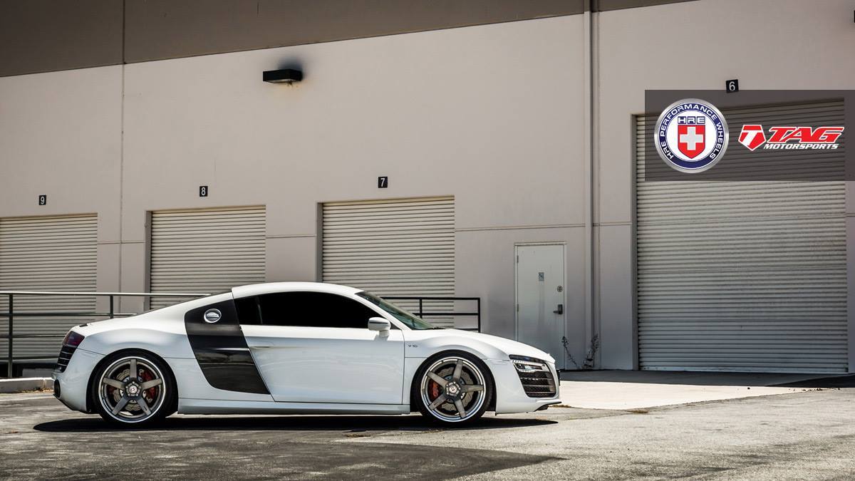 今天帶給各位一部由改裝廠TAG Motorsport所操刀的2014年款式Audi R8 V10,選用知名品牌HRE Performance Wheels、型號RS105的輕量化新款輪圈,並以紅色HRE刻字呼應紅色塗裝的原廠煞車卡鉗,再透過高低軟硬可調式避震器組的換裝將車身降低,讓這部德國超級跑車展現出低趴的迷人丰采。