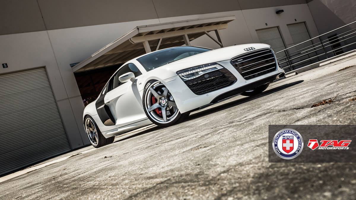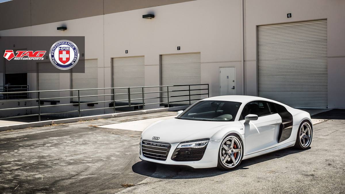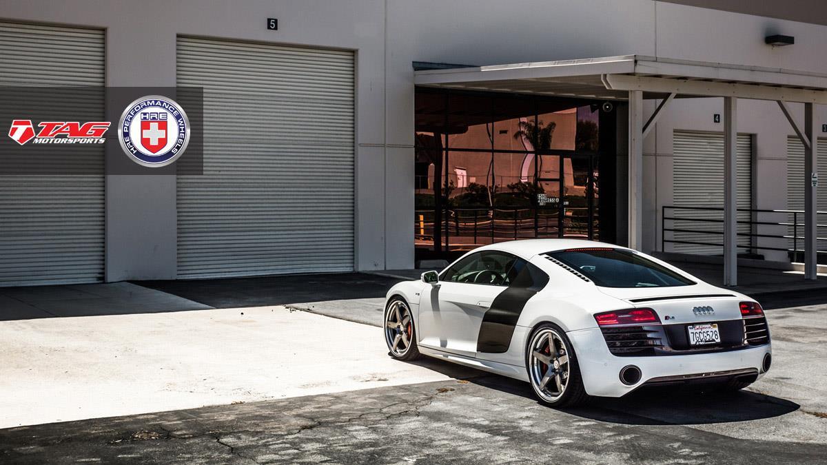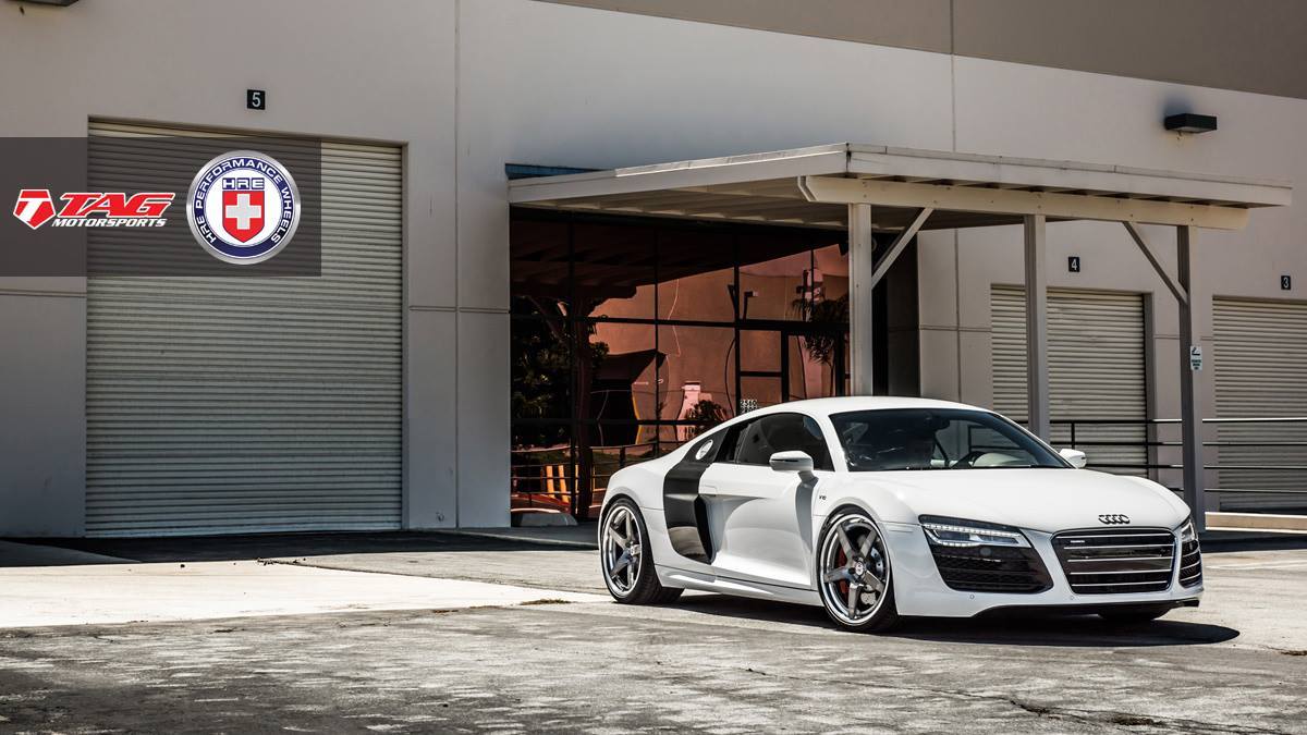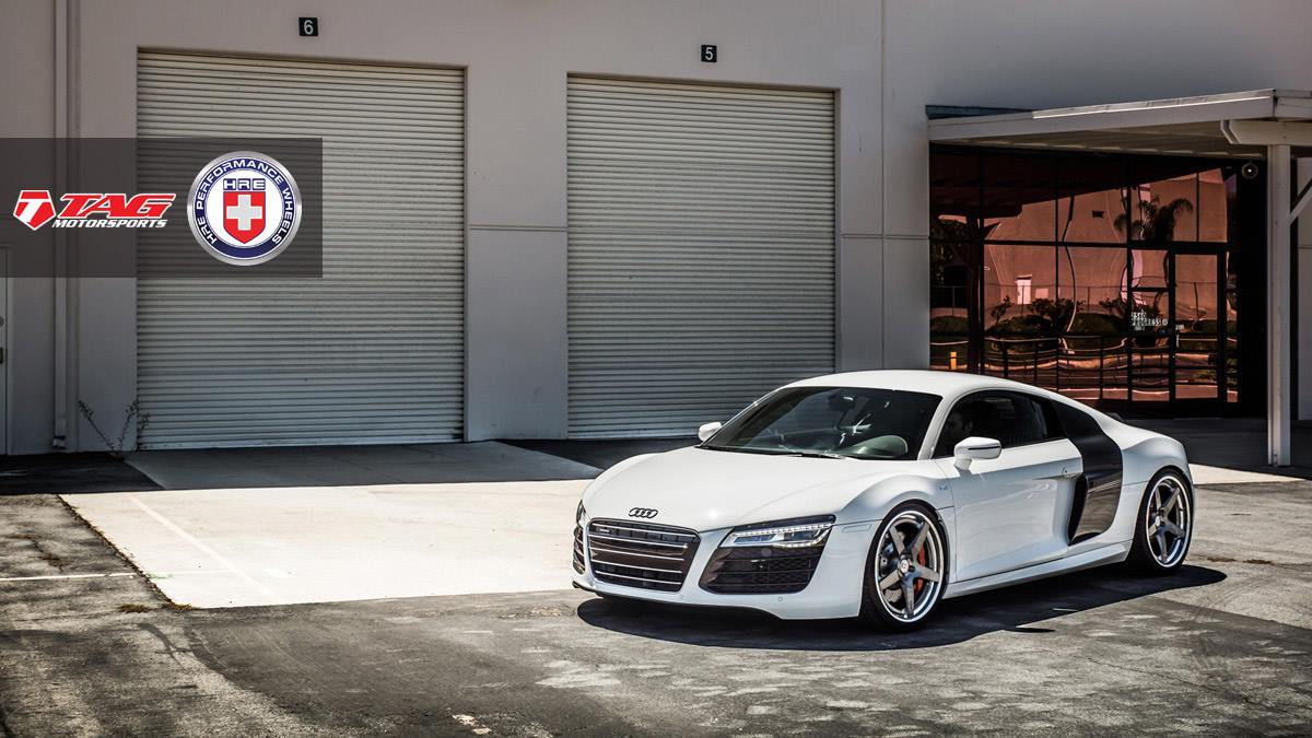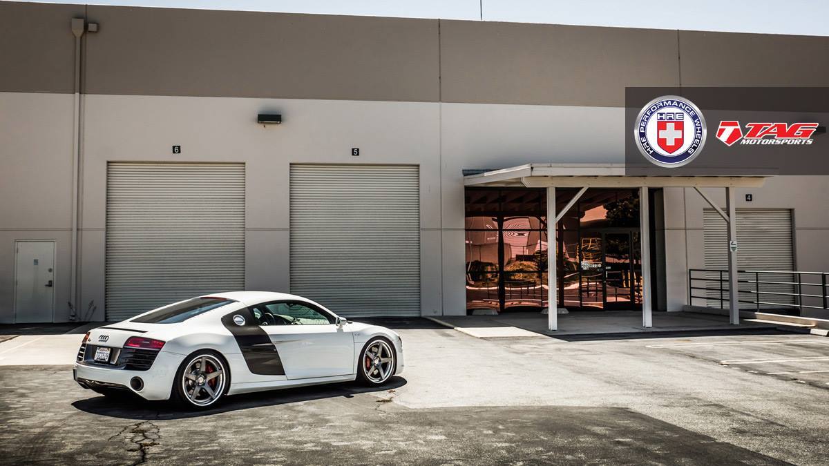 今天帶給各位一部由改裝廠TAG Motorsport所操刀的2014年款式Audi R8 V10,選用知名品牌HRE Performance Wheels、型號RS105的輕量化新款輪圈,並以紅色HRE刻字呼應紅色塗裝的原廠煞車卡鉗,再透過高低軟硬可調式避震器組的換裝將車身降低,讓這部德國超級跑車展現出低趴的迷人丰采。
