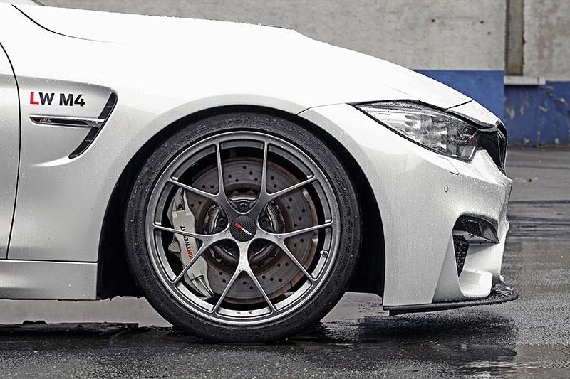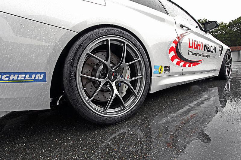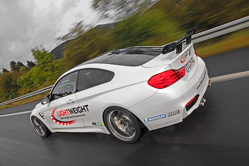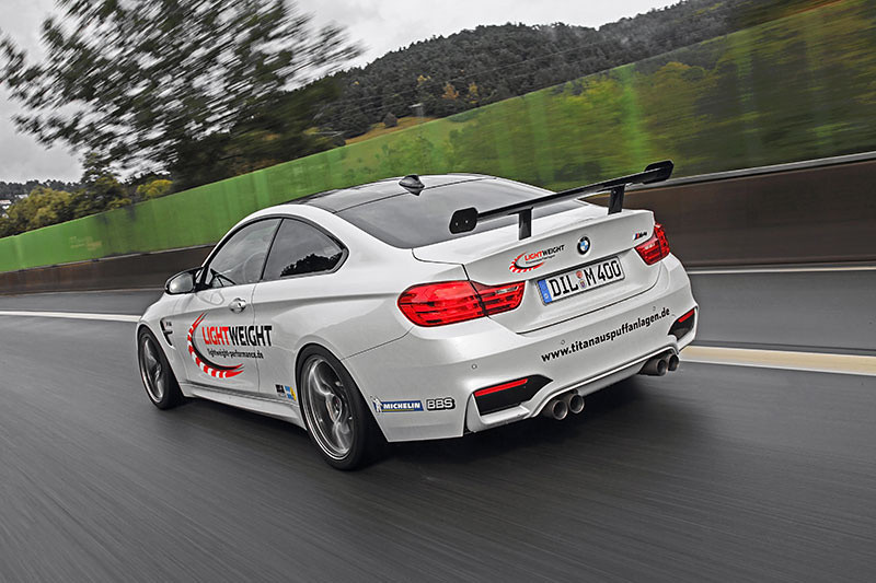 針對新款BMW M4所搭載、代號S55的渦輪增壓引擎,德國改裝廠Lightweight近日成功破解封印,透過電腦程式改寫、進氣系統強化與高性能排氣管換裝等步驟,將這部德國雙門跑車的最大馬力提升至520HP,扭力峰值達到66.3kgm,進步幅度相當明顯。另外,為了讓底盤功力能夠跟得上動力提升的腳步,Lightweight選擇換裝Biltsein Clubsport頂級避震器組搭配新款BBS鍛造輕量化輪圈,再換上強化型煞車系統與高性能跑胎,使得其整體操控性能獲得大幅度提升。