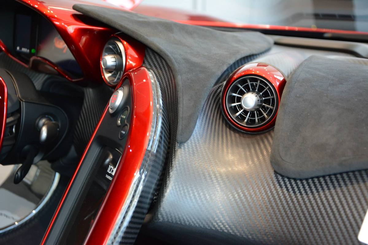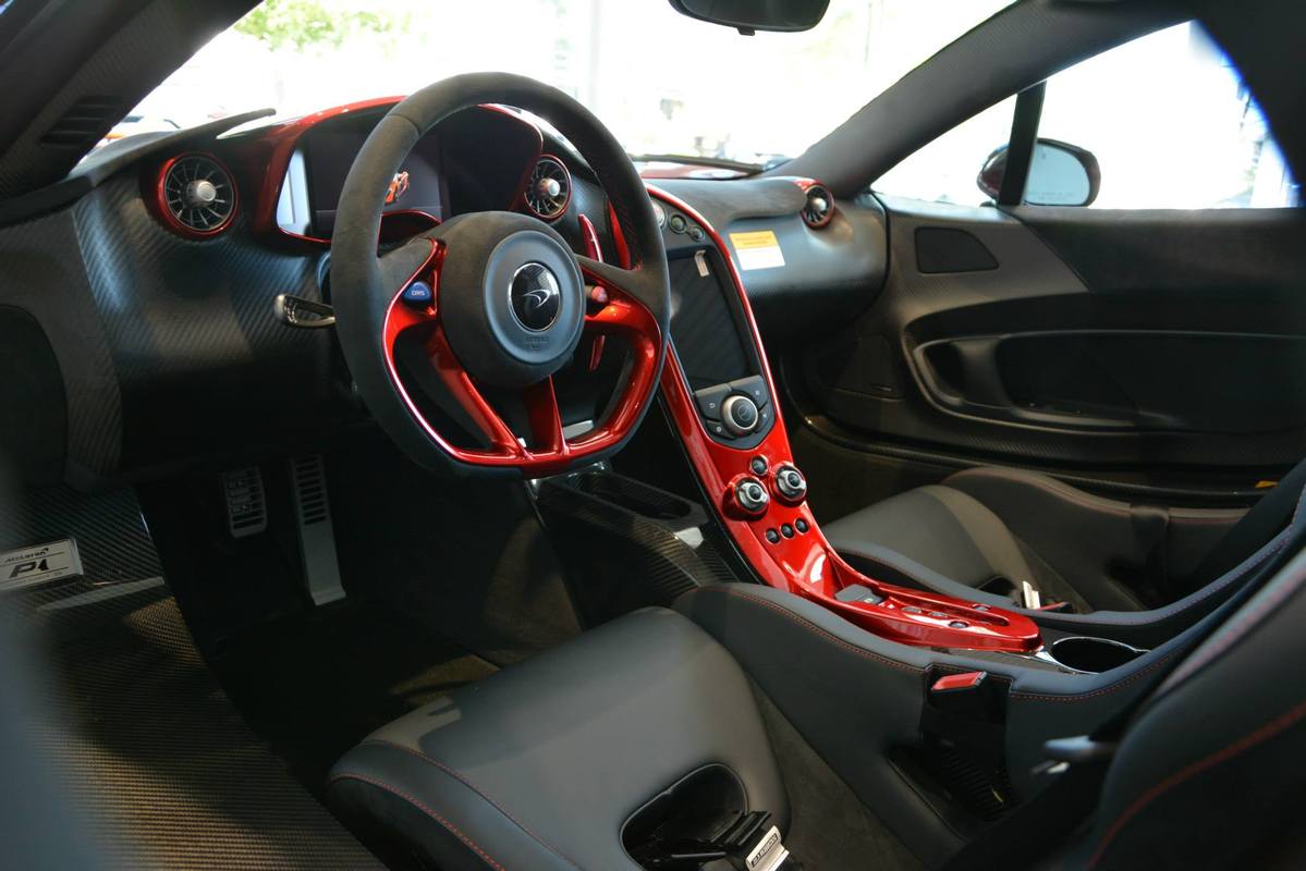 今天帶給各位一部由美國康乃狄克州格林尼治(Greenwich, Connecticut)代理商Miller Motorcars所引進、即將正式領牌上路的McLaren P1,車身編號109的它採用McLaren Special Operations (MSO)客製化部門所調製的耀眼的Cinnabar Red金屬紅色塗裝搭配槍灰色輪圈與紅色煞車卡鉗,內裝部分則是以灰黑色麂皮與碳纖維飾板為主軸,再搭配與車身同色的內裝飾板,展現出這部英倫油電混合超級跑車的另類質感。