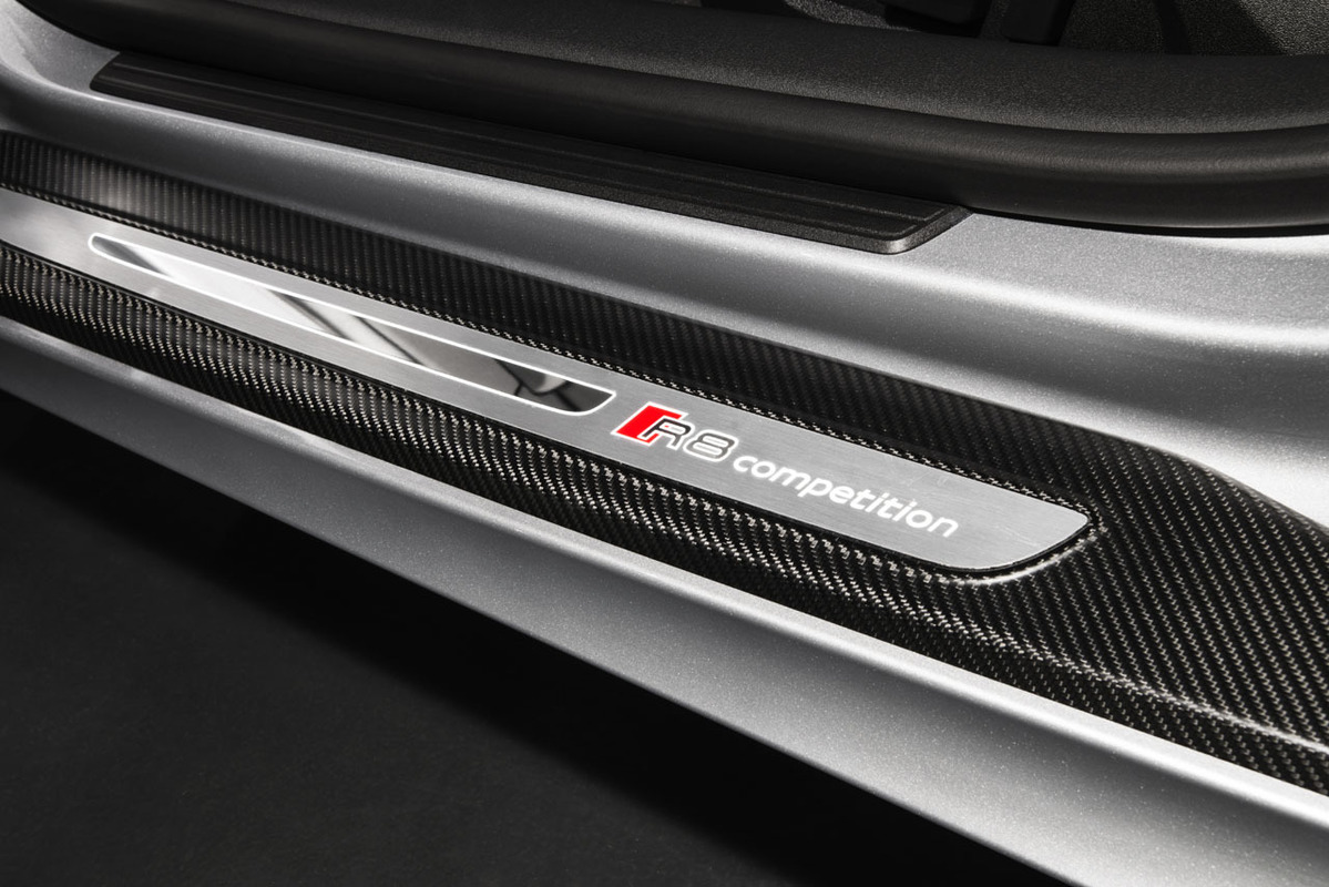 2015年款式的Audi R8 Competition搭載同樣的5.2升V10自然進氣引擎,最大馬力達到與Lamborghini Gallardo LP570-4 Superleggera相同的570HP,輔以S-Tronic七速雙離合器變速箱與四輪驅動系統的加持,百裡加速僅需3.2秒便可完成,極速上看323km/hr,堪稱史上最強R8道路用量產車。