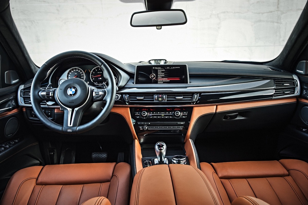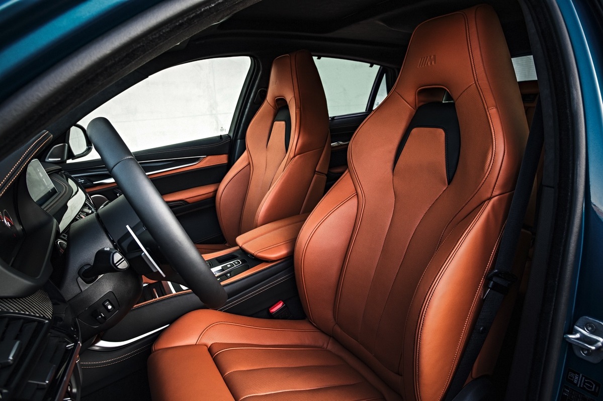 內裝部分,全新BMW F85 X5 M與F86 X6 M有著與其餘車型不同的運動型座椅與方向盤,也提供數種顏色的Merino真皮與飾板供買家搭配。