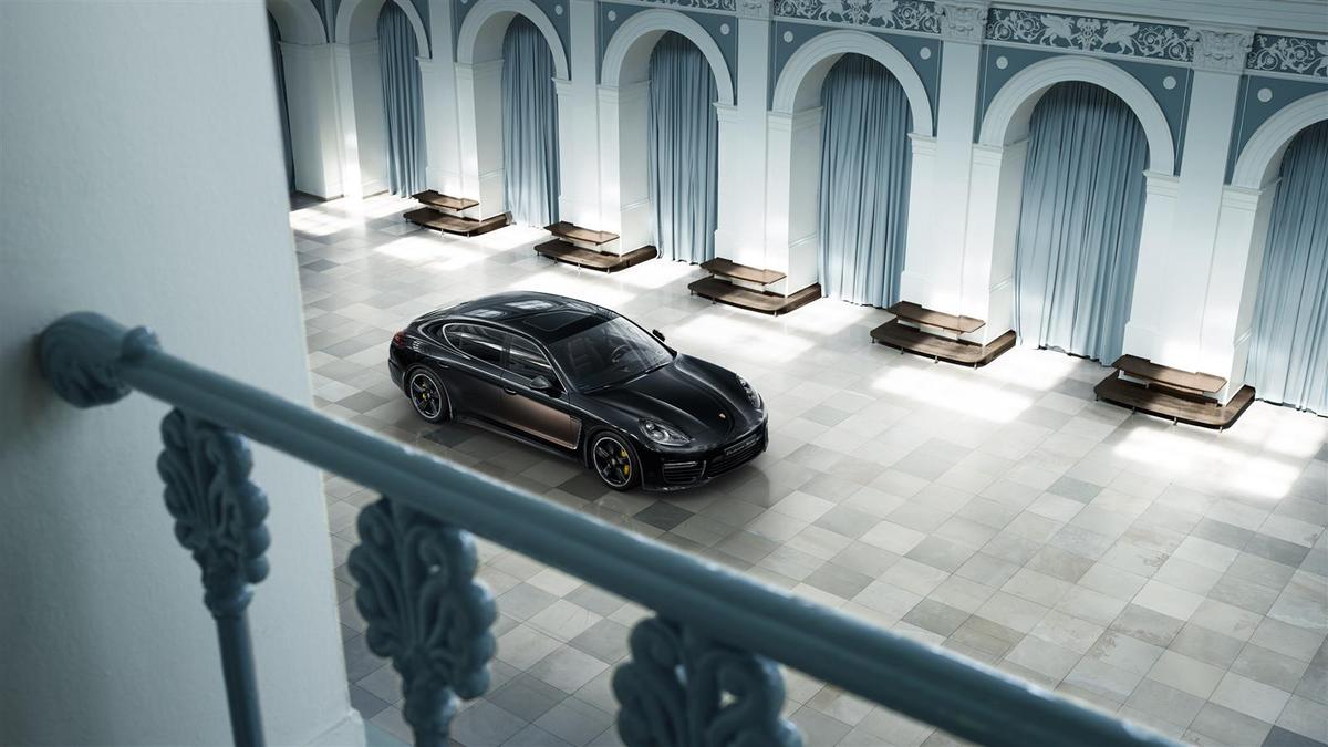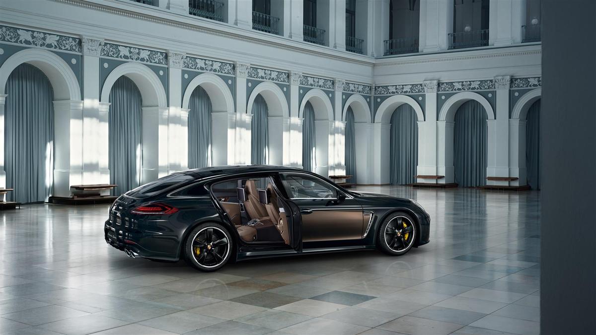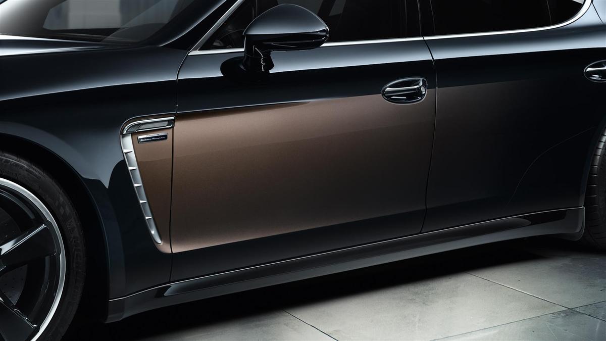 該部特製版本Porsche Panamera乃以車身增長150mm的頂級長軸版本Panamera Turbo S Executive為基礎打造而來,車身採用特殊的Black Metallic金屬黑色與Chestnut Brown Metallic金屬咖啡色雙調塗裝,其中咖啡色部分更是以手工上漆,而所搭配的20吋Sport Classic款式輪圈則是以金屬黑色處理。