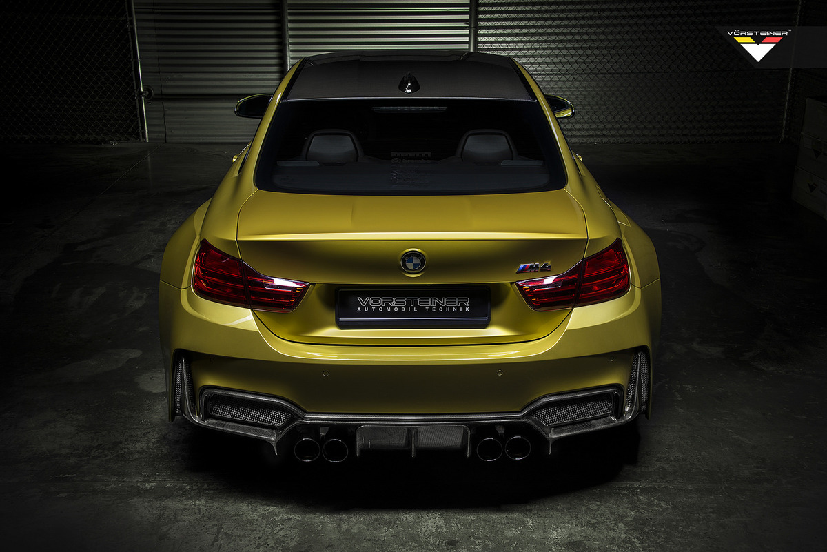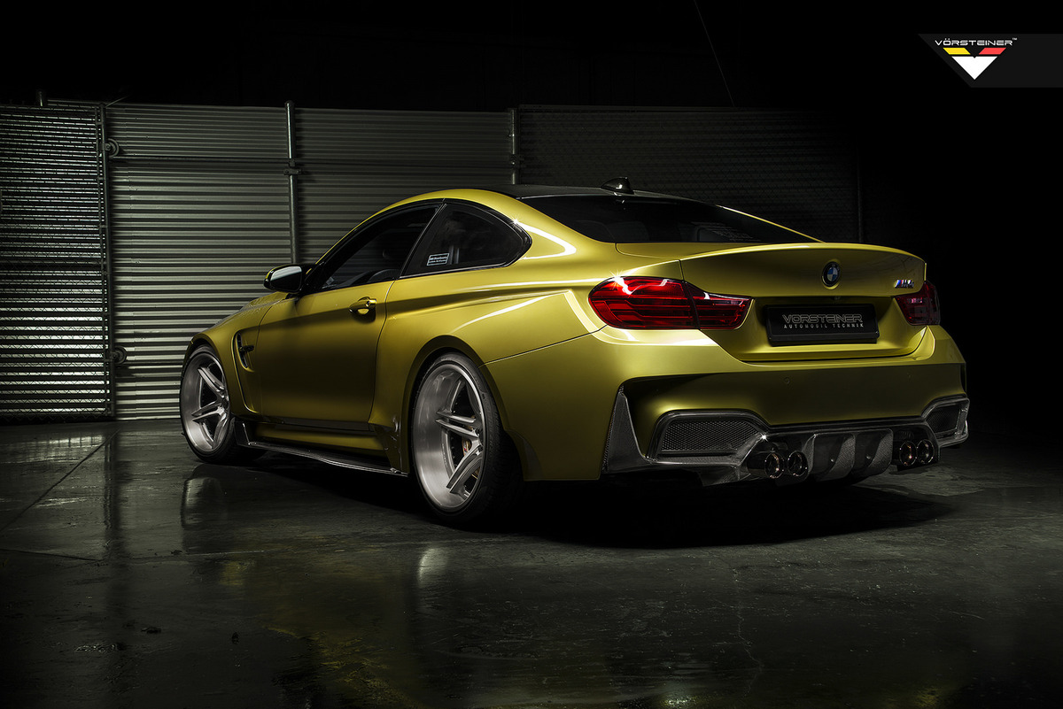 除此之外,Vorsteiner也準備一組全新設計的全碳纖維前保桿並將前下巴整合在內,另包含碳纖維側裙組、碳纖維後保桿與後下擾流板,同時換上口徑90mm的四出排氣管尾段。動力部分,該部即將代表Vorsteiner出席SEMA改裝車展的BMW M4選用來自ESS Engineering、型號「E-Tronic」的動力提升套件,將最大馬力由原廠的431HP提升至550HP,與其霸氣兇悍的外型相匹配。