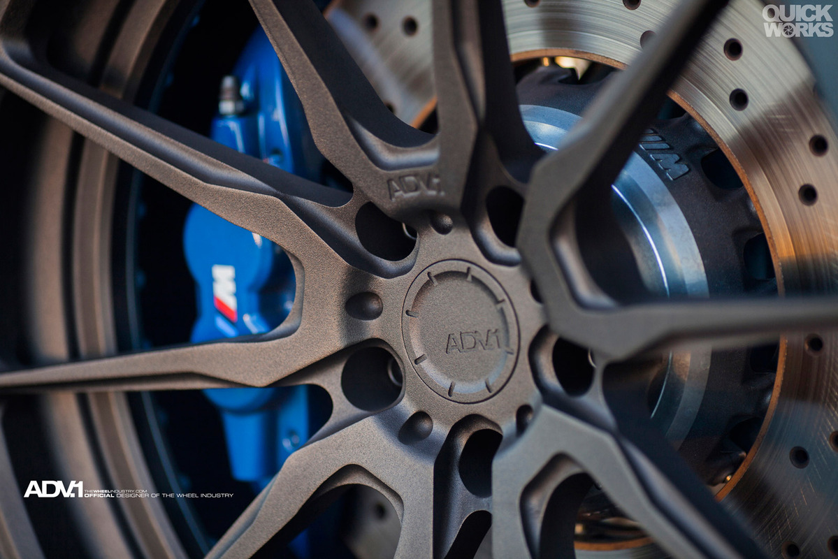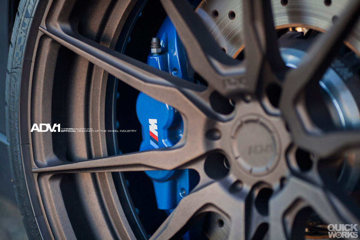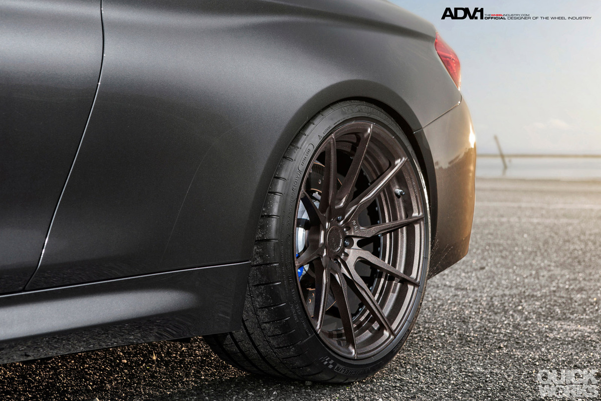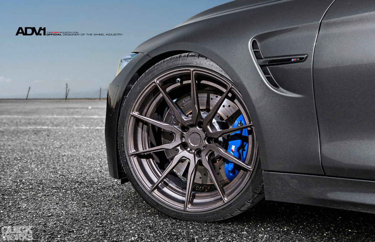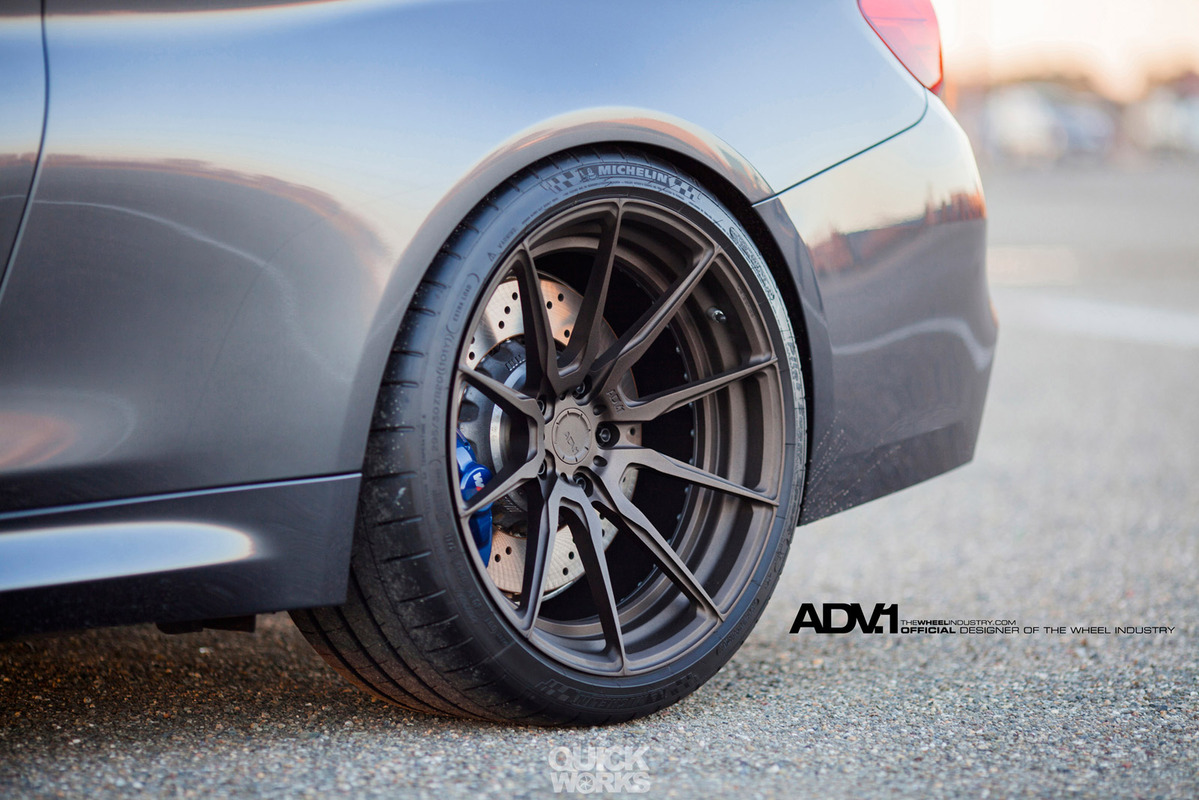 今天帶給各位一部由輪圈改裝品牌ADV.1 Wheels所提供的BMW F82 M4雙門跑車,車身採用內斂的Mineral Gray鐵灰色塗裝,另外選擇型號ADV5.0 MV2 CS的古銅色輪圈搭配原廠的藍色煞車卡鉗,再透過高低軟硬可調式避震器組的換裝將車身降得低趴,營造出動感跑格。
