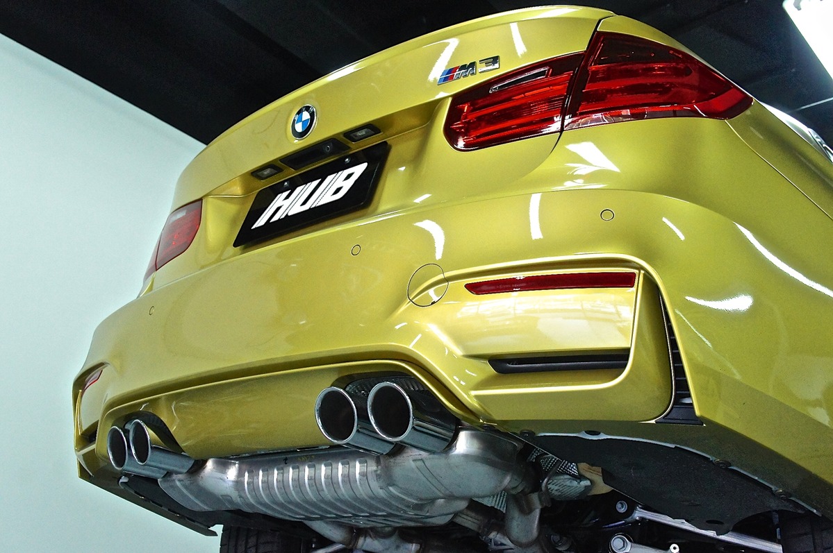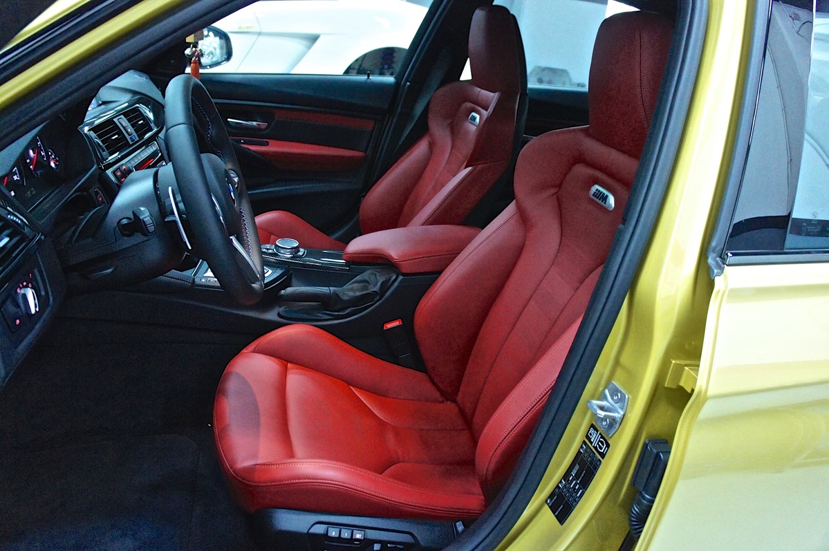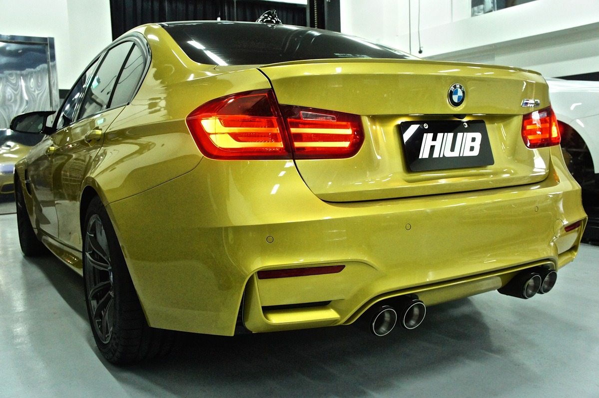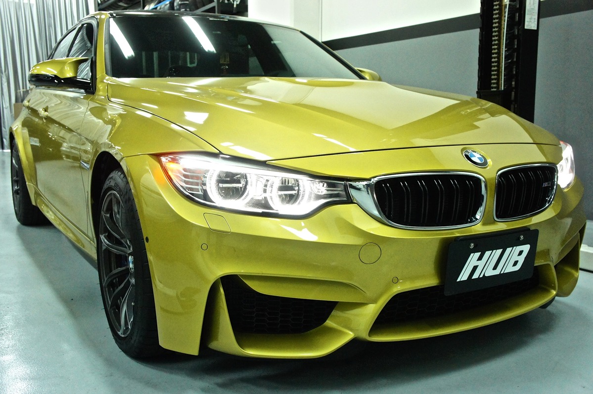 身為BMW旗下M軍團重量級角色,沿用M3型號的四門版本BMW F80 M3與雙門版本BMW F82 M4同樣搭載排氣量2,979cc的雙渦輪增壓、直列六缸引擎,能夠於5,390至7,000rpm間爆發出431HP的最大馬力,同時從1,800rpm至5,390rpm期間擁有51.02kgm的扭力峰值,斷油轉速則是設定在7,600rpm。仔細探究動力輸出特性,其最大扭力分布的範圍極廣且較上一代M3提升約40%,輔以M-DCT雙離合器七速變速箱,百里加速僅需4.1秒,選配M款動力提升套件、解除限速後,極速可達280km/hr。 除了動力方面的進化外,藉由大量碳纖維與鋁合金材質的運用,車重1,497公斤的雙門車型M4與1,520公斤的四門車款M3皆比前代車型輕約80公斤,對於性能表現有正向助益。針對全新款式雙門版本BMW F82 M4與四門版本BMW F80 M3兩部重量級M Car,全球各大改裝品牌無不積極展開產品開發,企圖搶食即將到來的首波新款M3與M4改裝熱潮。在國內,首批BMW M3或是M4車主已經陸續拿到愛車,而他們當中也已有不少人開始著手進行改裝,其中一部便是眼前這部Austin Yellow黃色塗裝的BMW F80 M3!