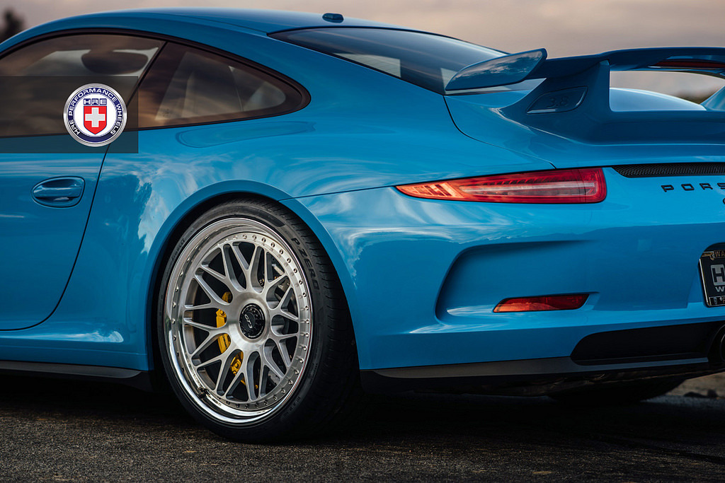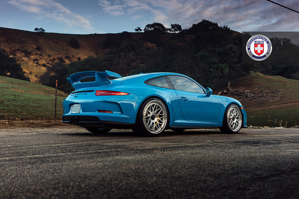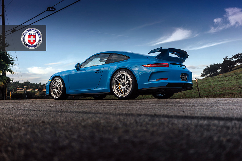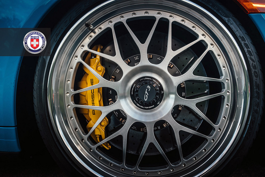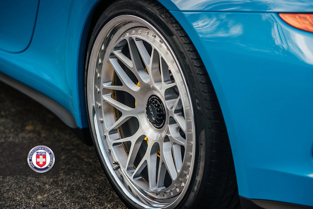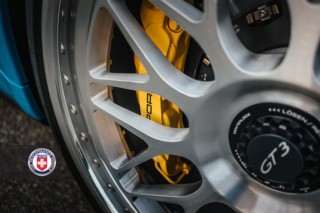 今天帶給各位一部大膽挑戰視覺的Porsche 991 GT3,除了車身採用特別的Mexico Blue藍色塗裝之外,輪圈更換為知名品牌HRE Performance Wheels、Classic經典系列當中型號「300」的款式,圈面採用手工刷痕銀色烤漆,外圈則是以電鍍拋光處理,尺寸為前21x9.5J、後21x12.5J的前後配設定,同時沿用原廠黑色單孔中心蓋,兼具整體感與便利性。