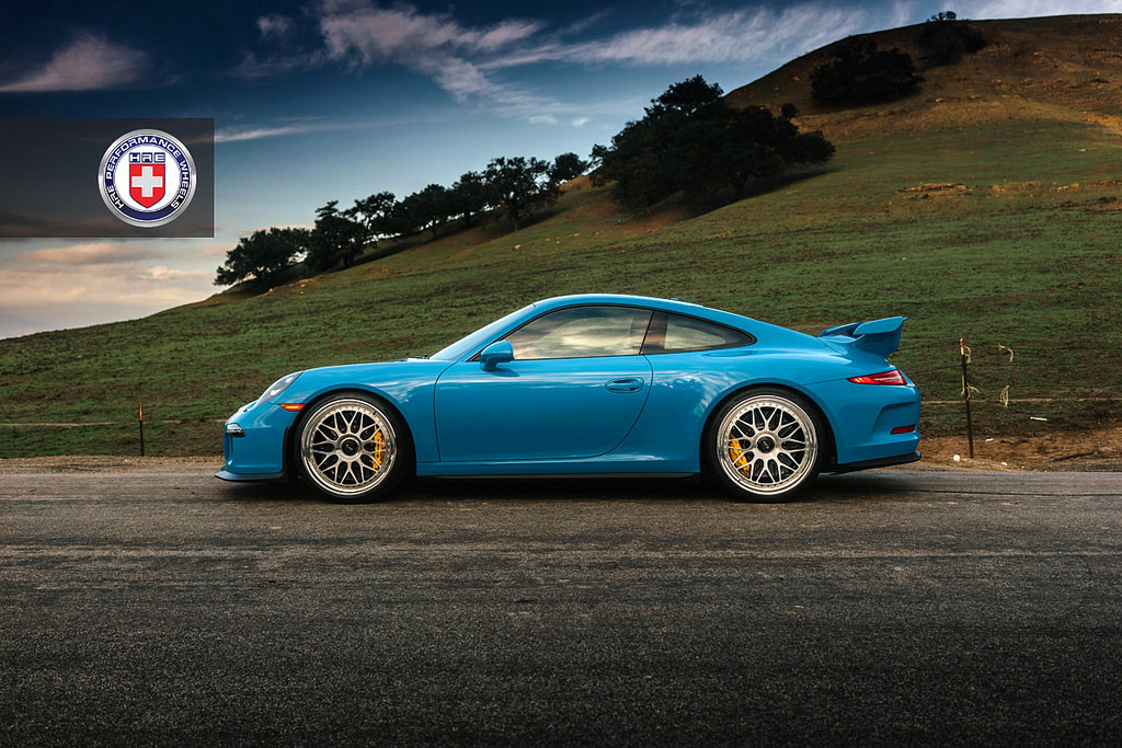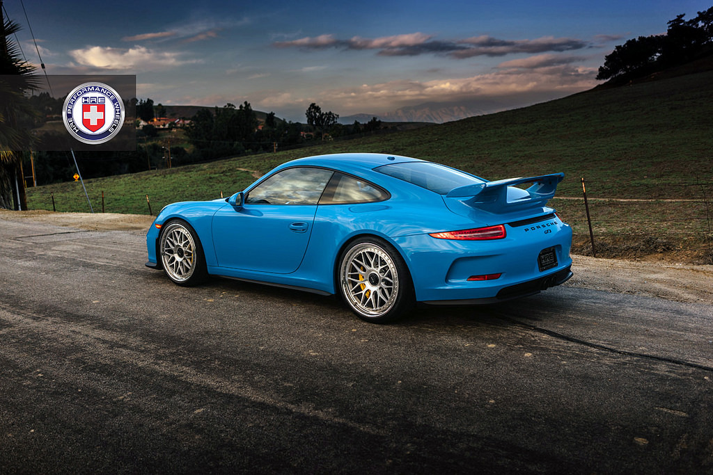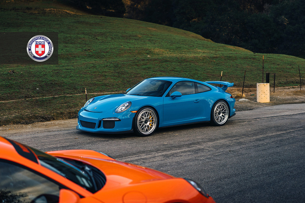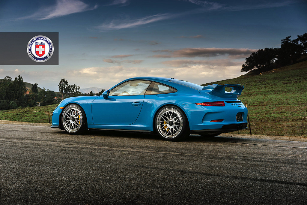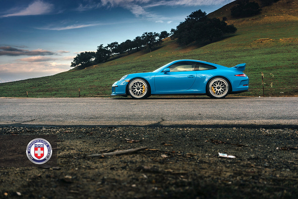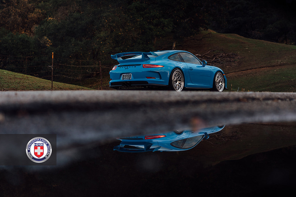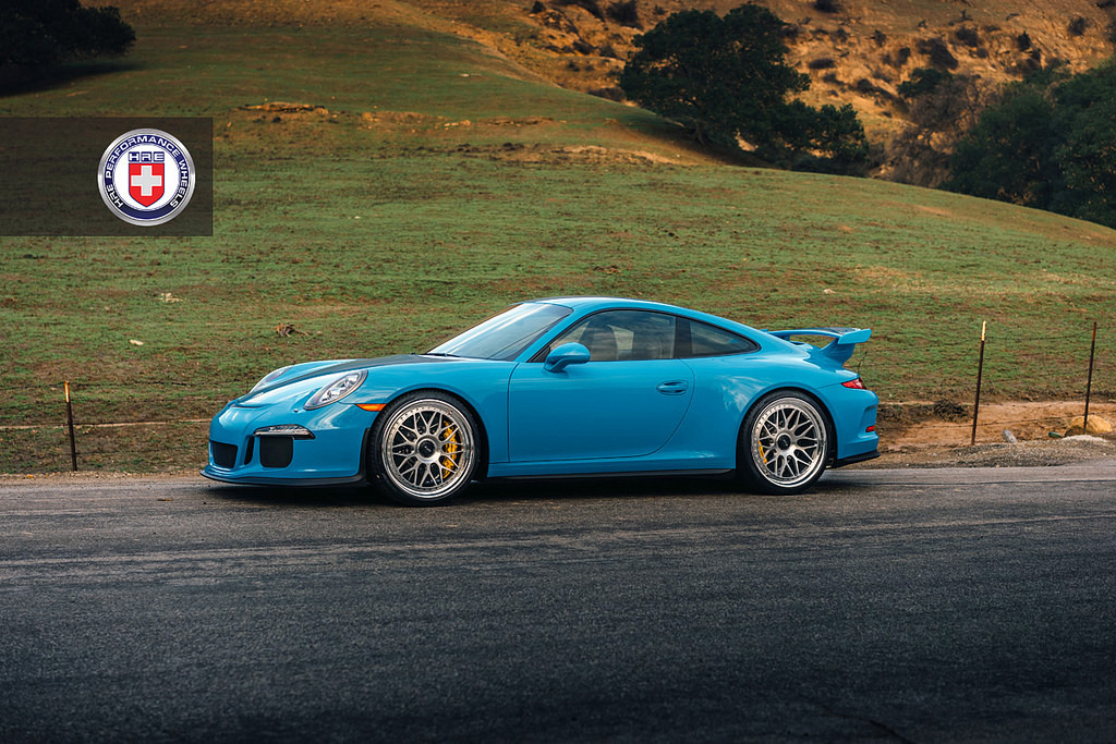 今天帶給各位一部大膽挑戰視覺的Porsche 991 GT3,除了車身採用特別的Mexico Blue藍色塗裝之外,輪圈更換為知名品牌HRE Performance Wheels、Classic經典系列當中型號「300」的款式,圈面採用手工刷痕銀色烤漆,外圈則是以電鍍拋光處理,尺寸為前21x9.5J、後21x12.5J的前後配設定,同時沿用原廠黑色單孔中心蓋,兼具整體感與便利性。