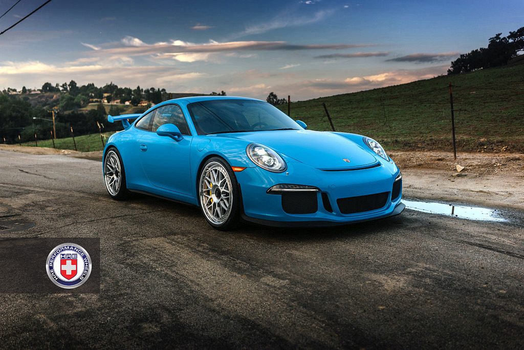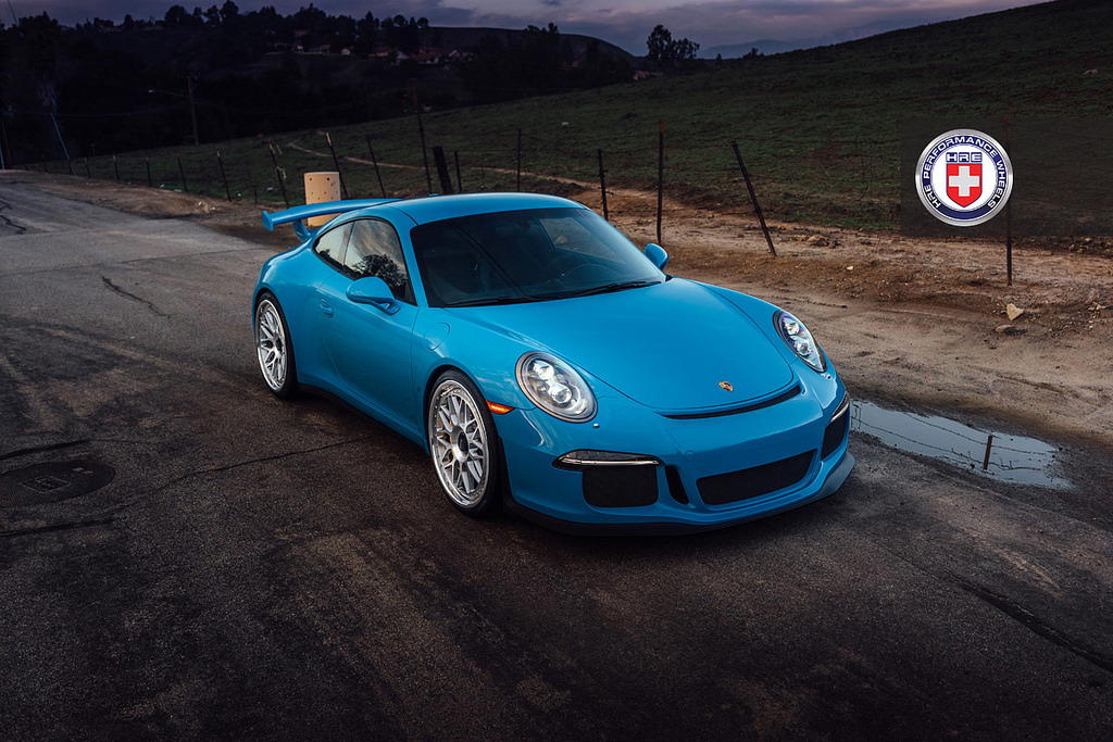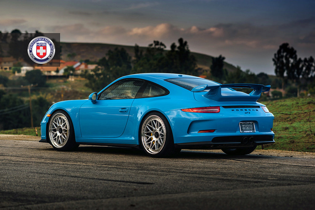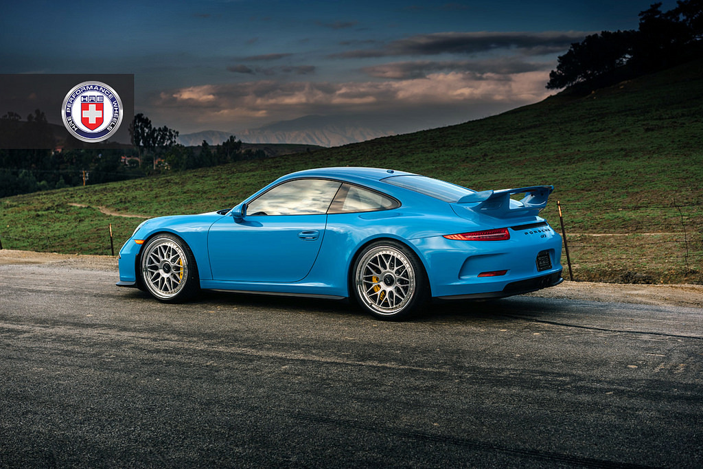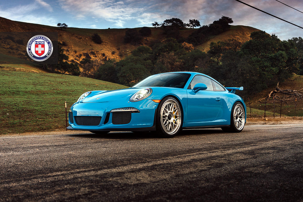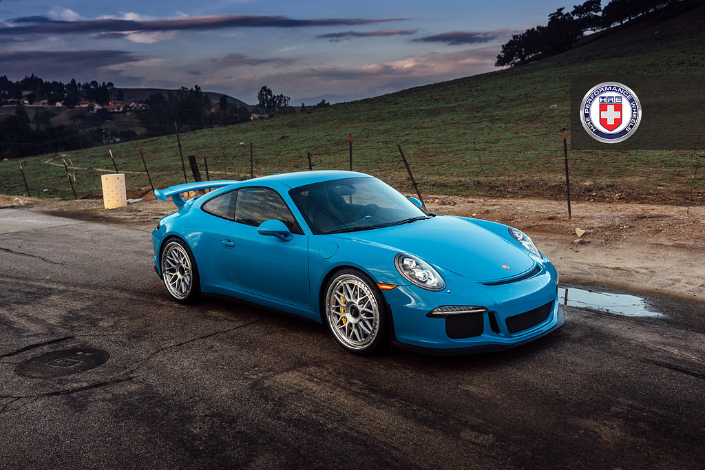 今天帶給各位一部大膽挑戰視覺的Porsche 991 GT3,除了車身採用特別的Mexico Blue藍色塗裝之外,輪圈更換為知名品牌HRE Performance Wheels、Classic經典系列當中型號「300」的款式,圈面採用手工刷痕銀色烤漆,外圈則是以電鍍拋光處理,尺寸為前21x9.5J、後21x12.5J的前後配設定,同時沿用原廠黑色單孔中心蓋,兼具整體感與便利性。