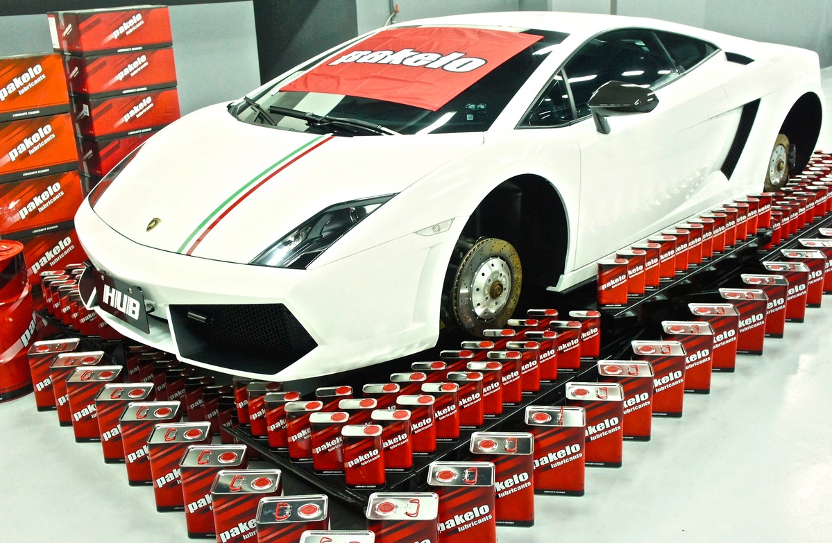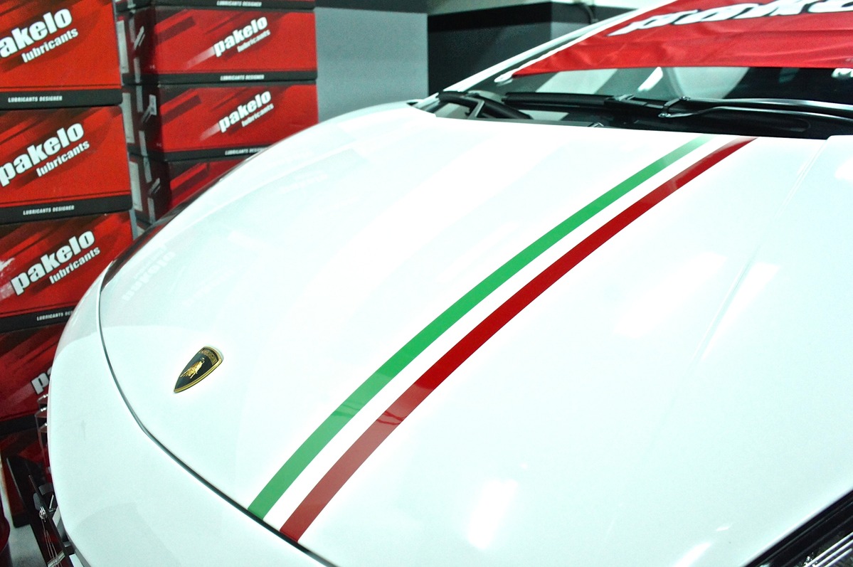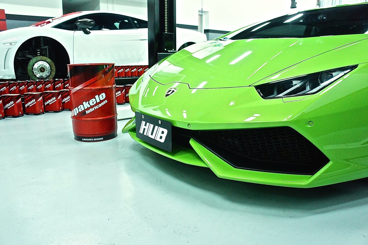 在停留HUB Auto廠內的同時,這部Huracán LP610-4巧遇「前輩」Gallardo LP550-2 Tricolore與同樣來自義大利(Italy)的精品級機油品牌Pakelo,而根據現場使用過Pakelo機油車主們的說法,其效能超乎他們原本所想像,因此所收藏的各廠牌名稱,都會陸續使用Pakelo機油,至於這部里程數僅不到1,000公里的Huracán LP610-4,可能會等到馴車期過後再更換。
