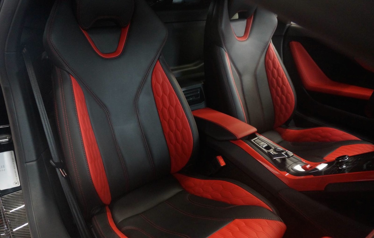 外觀部分,Mansory為這部高人氣新款超級跑車準備了新款日間行車燈、全新前下巴、側裙加裝件、後下擾流板與後上擾流尾翼等部品,風格有些類似Aventador LP720-4 50° Anniversario,材質全數採用高檔碳纖維打造而成,配在黑色塗裝的Huracán身上,顯得既霸氣又內斂。除此之外,根據Mansory工程部門的說法,該組空力套件經過空洞實驗的測試,對於加速、車尾下壓力與制動能力皆有所助益。另外,Mansory針對Huracán特別訂製專屬輕量化輪圈,採用前20x9.0J、後21x12.5J的前後配設定,搭配前245/30ZR20、後325/25ZR21的高性能跑胎。