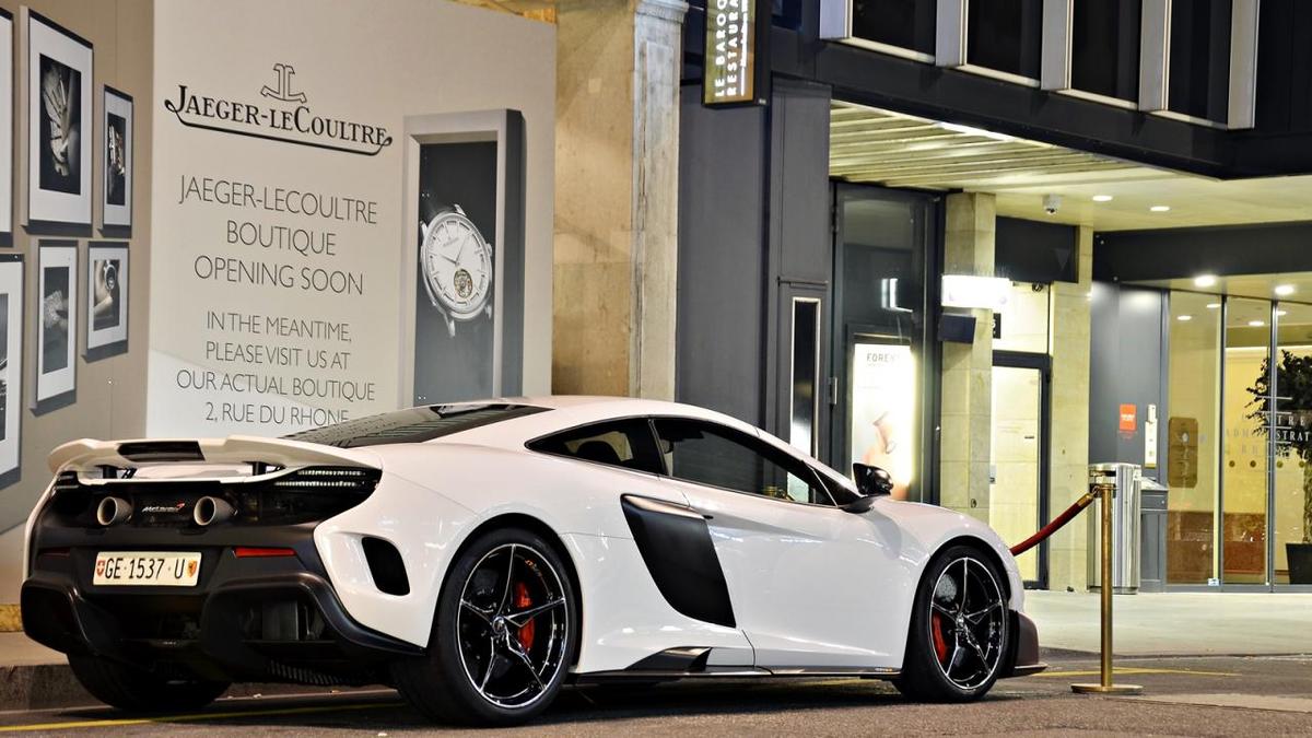 甫在第85屆日內瓦車展(Geneva Motor Show)當中發表的全新McLaren 675LT日前現身日內瓦(Geneva)街頭,該車身披亮眼潔淨的白色塗裝,與車展中亮相的水泥灰色者不同,而停放在名錶品牌積家(Jaeger-LeCoultre)即將落成的新展示間前的這部McLaren 675LT,也巧妙地成為吸引路人圍觀的活廣告。