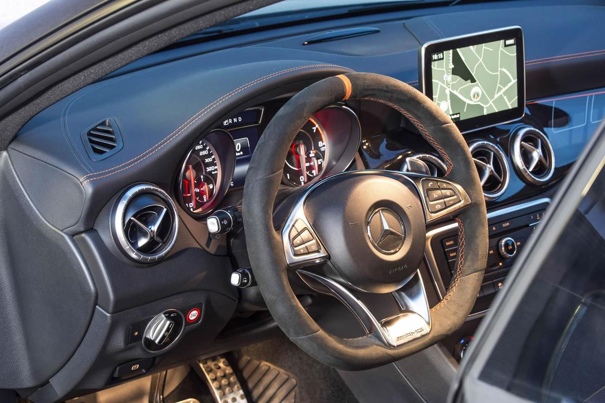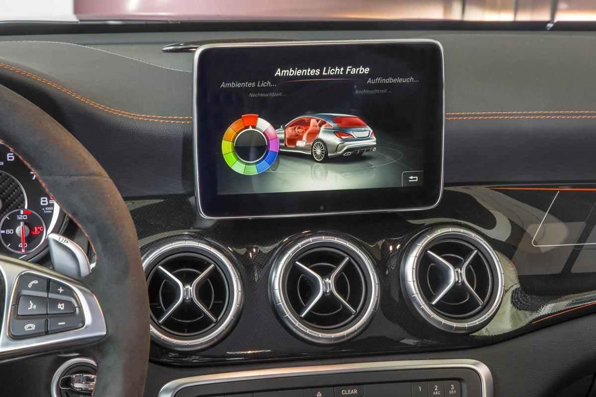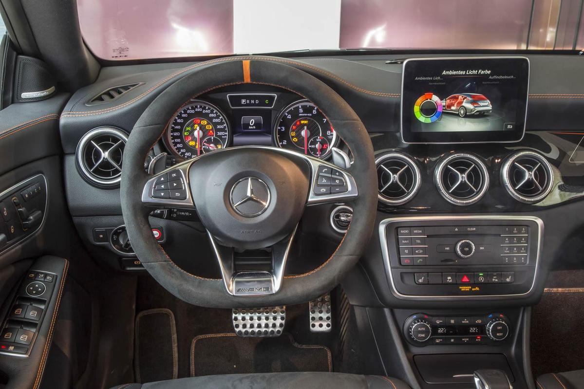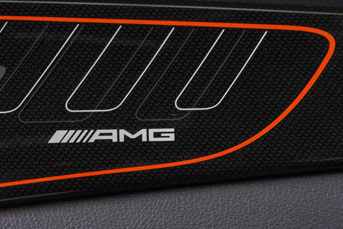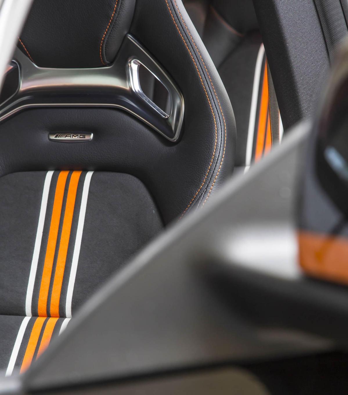 內裝部分,Mercedes Benz CLA45 AMG Shooting Brake OrangeArt Edition配有碳纖維飾板、雙材質運動型AMG座椅、橘色車縫線與鑲於排擋座的專屬「AMG OrangeArt EDITION」銘板,尊榮指數即刻飆高。
