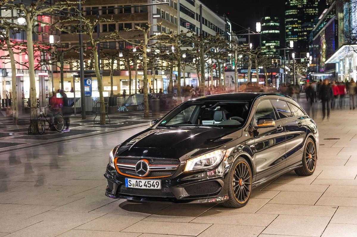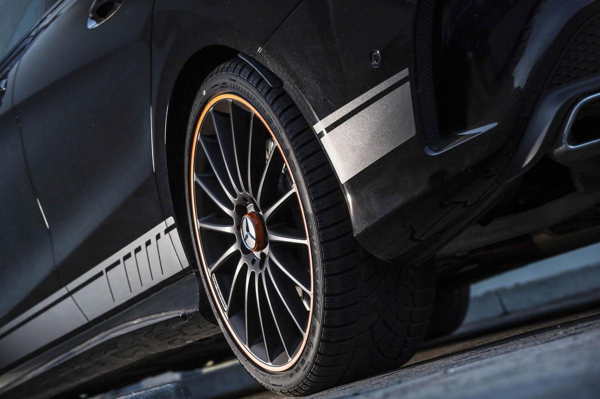 今天與各位分享的不僅是一般的CLA45 AMG Shooting Brake,而是剛出爐的橘色藝術特仕版本CLA45 AMG Shooting Brake OrangeArt Edition,在頭燈上緣、後視鏡下緣、水箱護罩週邊與後下擾流週邊等處施以橘色處理,其放射狀消光黑色放射狀輪圈也採用橘色滾邊與中心蓋環,再搭配環伺全車的下半部貼飾,整體扮相相當吸睛。