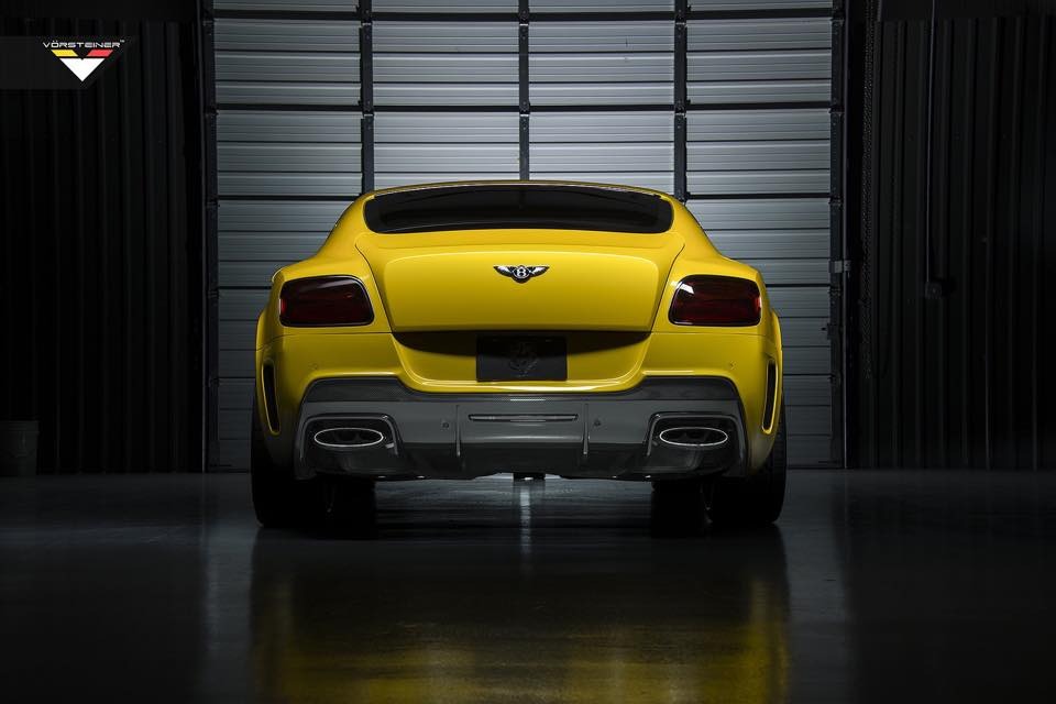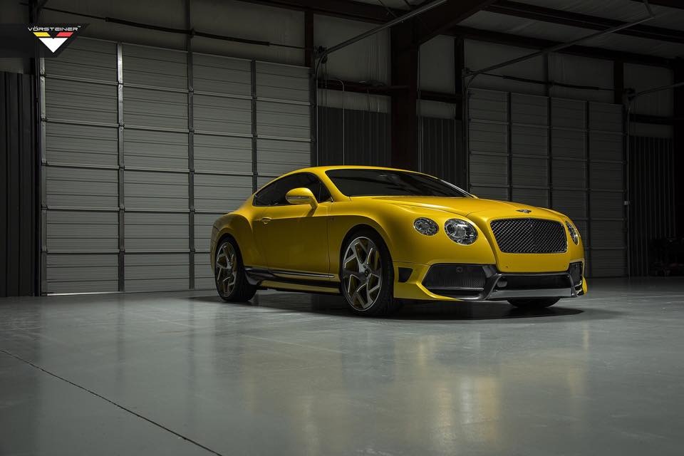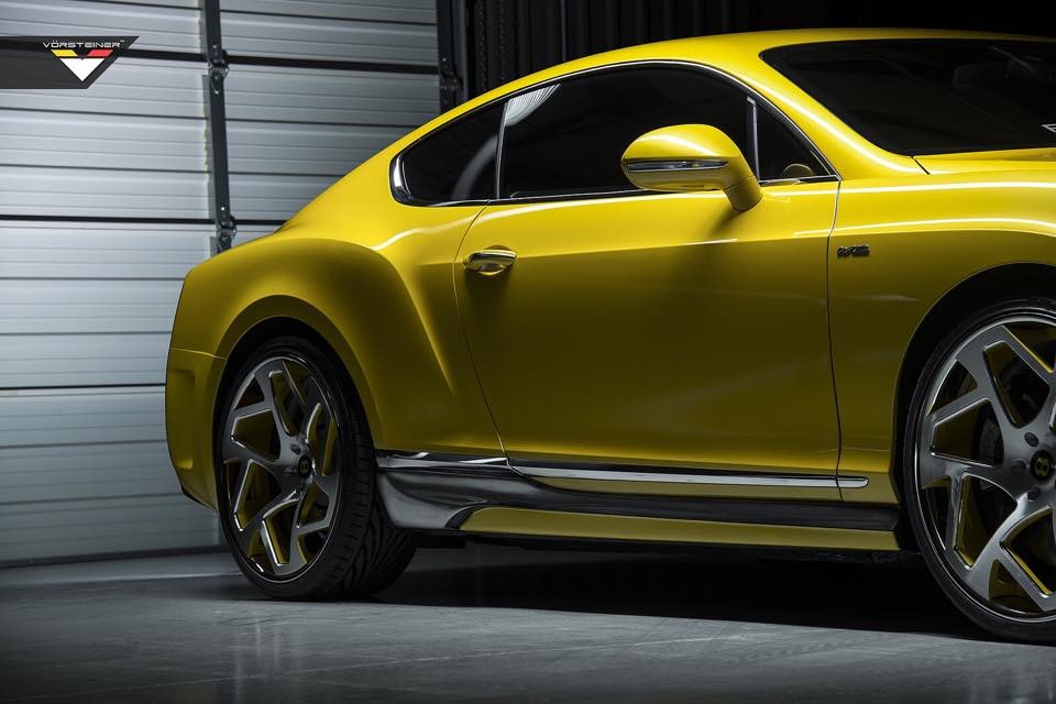 車頭部分,Vorsteiner替這部英國雙門GT跑車換上全新設計的碳纖維輕量化前保桿搭配侵略性十足的前下巴,側面則是有新款側裙加持,車尾視覺效果則是交給碳纖維後保桿與後下擾流板營造,搭配設計感強烈的輕量化輪圈與展示車耀眼的黃色車身,在Continental GT雍容華貴的氣勢之外,增添動感氛圍。