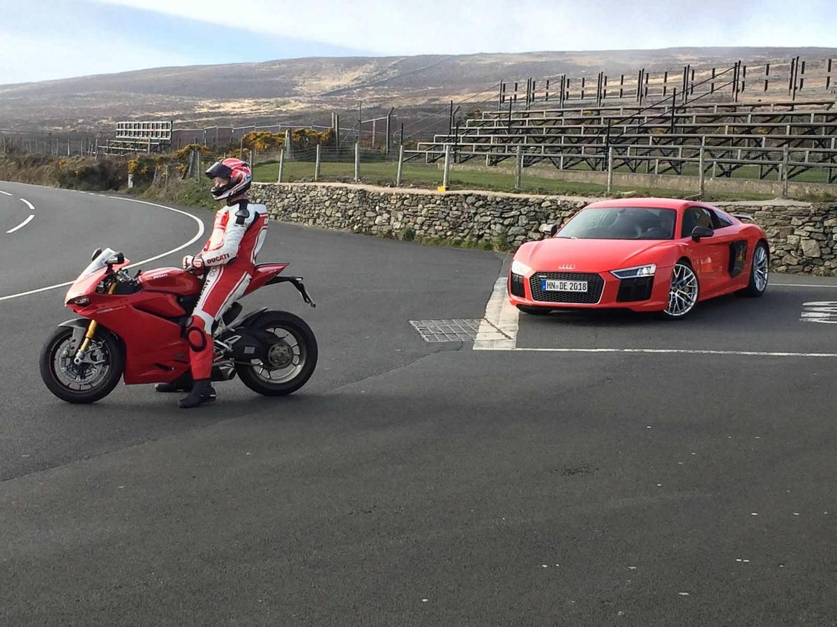 在今年熱鬧無比的日內瓦車展(Geneva Motor Show)當中,嶄新的Audi旗艦跑車R8首次與世人見面。日前,國外媒體Reddit更在路邊虜獲一部正在與2015年款式Ducati 1299 Panigale S合拍廣告的Audi R8 V10 Plus,兩者皆採用亮眼醒目的紅色塗裝,引起不少路人關注。