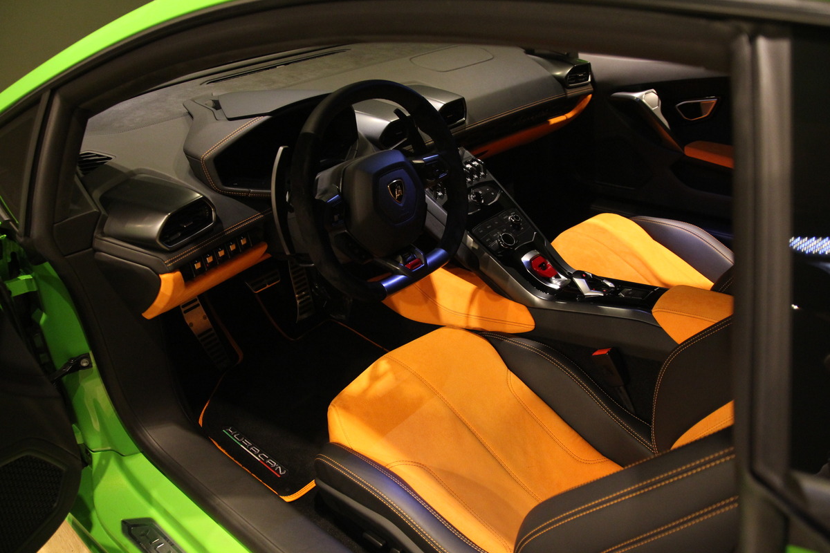 眼前這一部是由本地知名車商豐群汽車(TOP AUTO)所祭出的2015年款式Lamborghini Huracán LP610-4現車,里程數僅2,000公里,外觀採用Verde Mantis珍珠綠色塗裝搭配麂皮與真皮交織搭配Nero黑色與Arancio Leonis橘色的雙色麂皮真皮混合內裝,同時繡有對比的橘色車縫線與頭枕刺繡,另外選用20吋Mimas銀色鍛造輪圈搭配橘色塗裝煞車卡鉗,收錄了Lamborghini最被公認的兩種代表色,算是相當具有品牌概念的配色。
