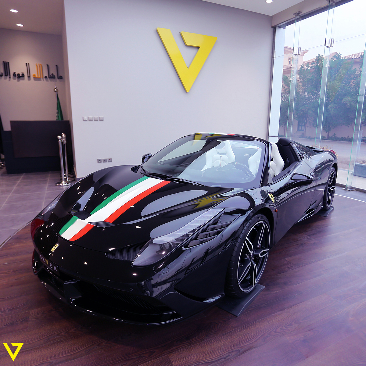 根據可靠消息指出,在本地總代理臺灣蒙地拿(Modena Motori Taiwan)積極地爭取下,臺灣地區可望出現4至5部配額,而公司測試車與首部顧客訂購的現車業已抵達本地,同時已緊鑼密鼓地正在進行驗車領牌流程。如今,在沙烏地阿拉伯(Saudi Arabia)的知名超跑車商Seven Car Lounge出現了當地首部願意釋出的Ferrari 458 Speciale A,而且該部車有著極具風格的選配,車身採用Nero Pastello黑色塗裝搭配義大利國旗飾條、鑽石拋光輪圈與黑白雙色真皮內裝,而車尾Ferrari盾牌與煞車卡鉗等皆施以黑色處理,營造出簡潔、不至於太複雜的車身氛圍,烘托出義大利國旗三色的多層次美感。