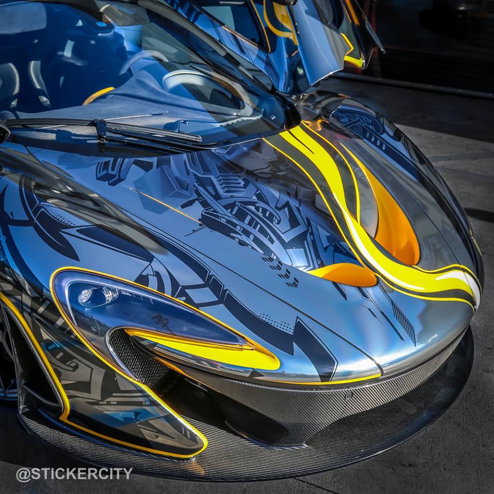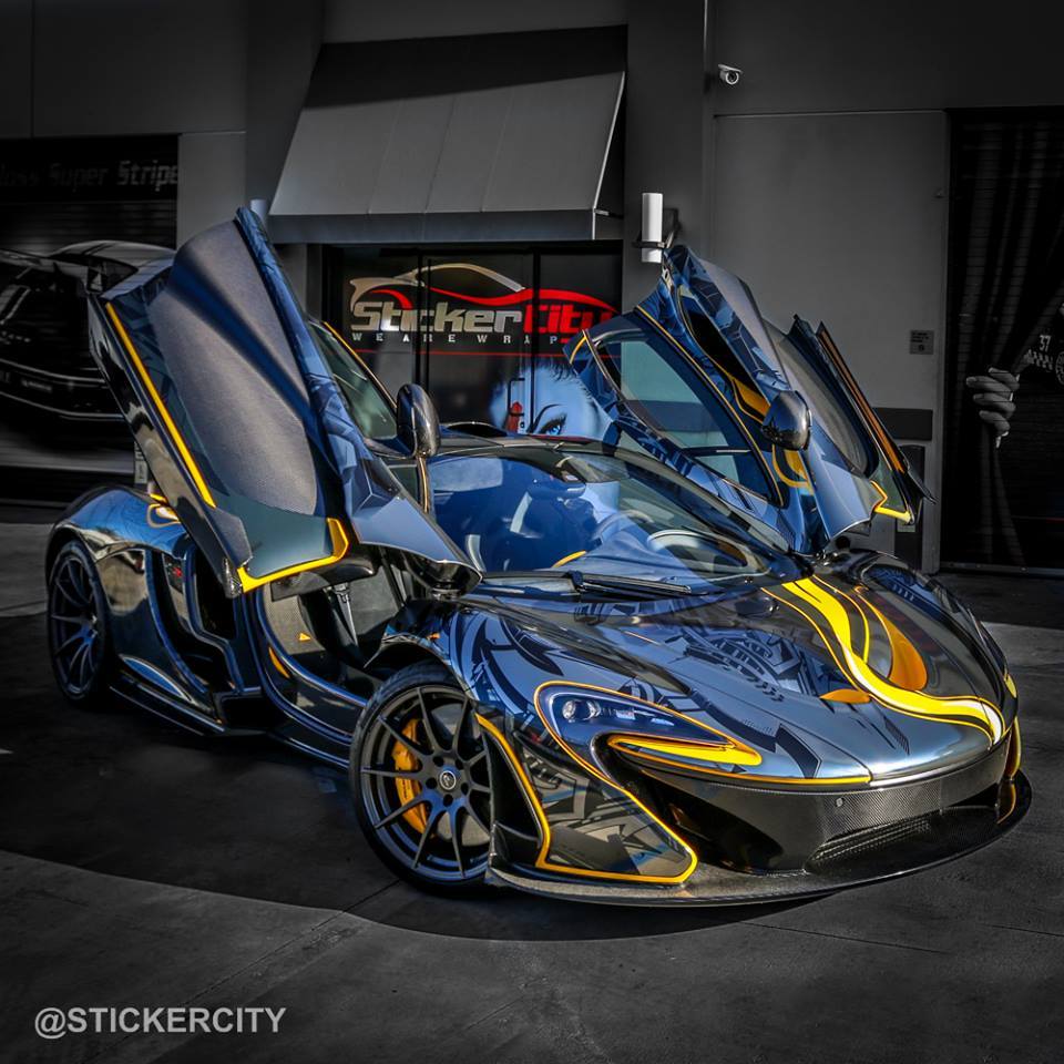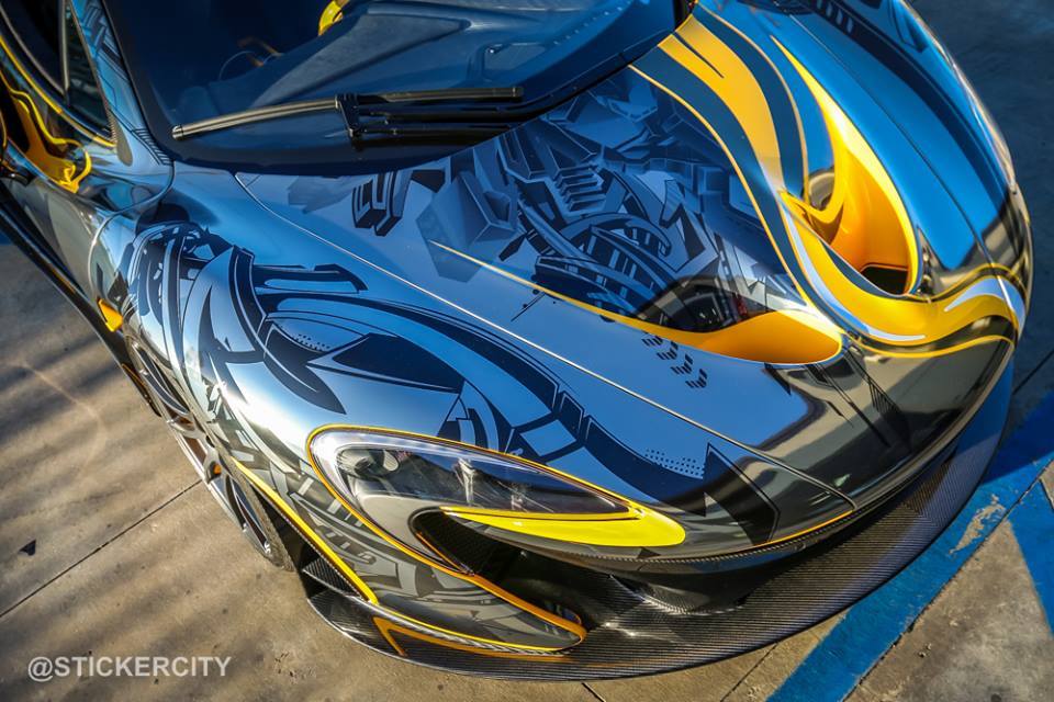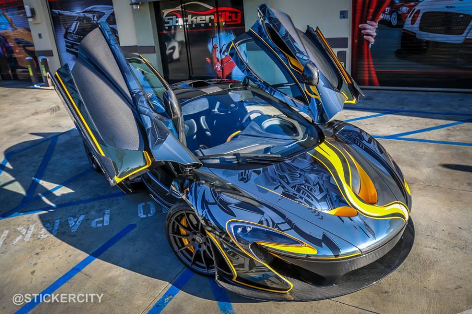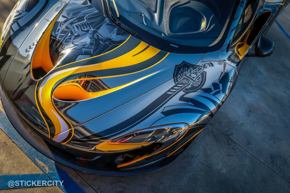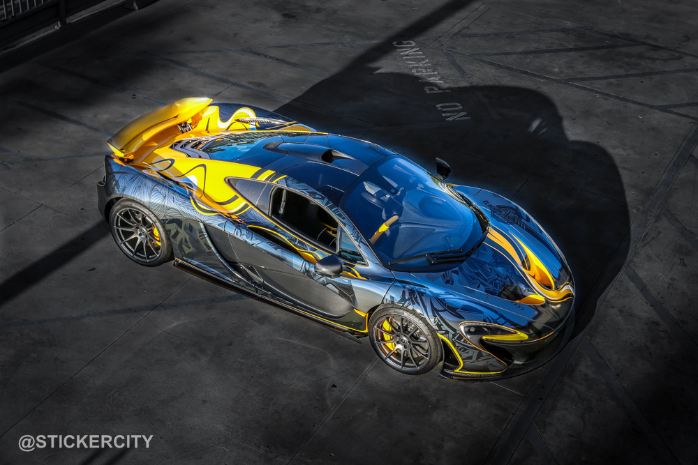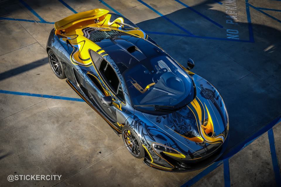 國際知名車隊Team Galag在去年參加Gumball Rally路跑活動時,曾經派出一輛全車施以貼膜彩繪的McLaren P1,而今天我們要與各位分享的則是美國加州(California, USA)貼膜專家Sticker City的最新McLaren P1作品,用上深淺兩種電鍍黑色頂級貼膜覆蓋在原本Volcano Yellow黃色的車身上,營造出宛如刺青般的耀眼質感,故他們也將它取名為「Tattoo Edition」。