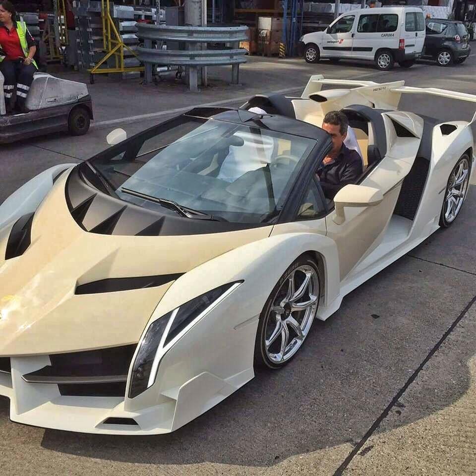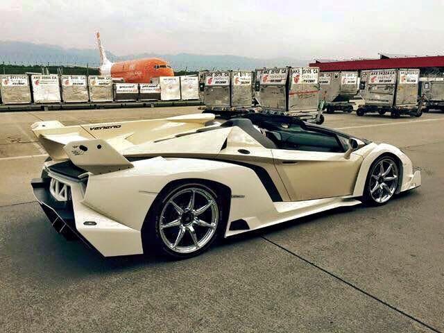 眼前這部全新Lamborghini Veneno Roadster前幾天被國外網友在機場所擄獲,據聞買家為中東地區的富豪,特別選用Bianco Cream奶油白色車身塗裝與Avorio Lilium象牙白色真皮內裝,再搭配前所未見的電鍍拋光式樣Razze專屬輪圈,視覺效果相當出眾。