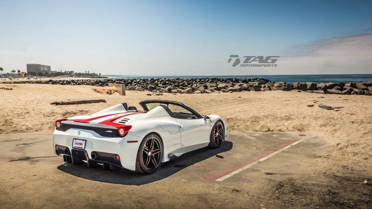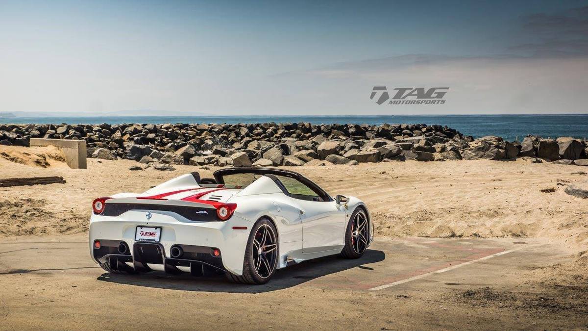 今天帶給各位一部由美國改裝廠TAG Motorsports所操刀的Ferrari 458 Speciale A,車身採用珍珠白色塗裝搭配紅色車身飾條與紅色煞車卡鉗,換裝知名輪圈品牌HRE、型號P107的輕量化亮面黑色輪圈,而其五幅雙肋的簡單設計,散發出與原廠輪圈不同的動感視覺。至於該部車的其餘部分,車主打算暫時維持原廠設定,畢竟如果要大肆改裝,他的確有點捨不得更動這部限量超跑的原裝設計,換組輪圈可能已是最大接受範圍。
