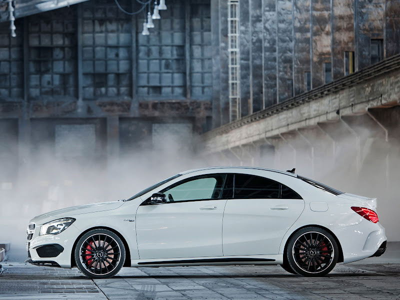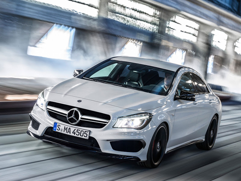 內裝方面,CLA 45 AMG將換裝配雙區衡溫空調系統、跑車化方向盤、跑車化座椅、雙氙氣頭燈、自動感應雨滴系統、舒適性懸吊、以及多項安全輔助系統配備。皮革材質的運動化座椅搭配黑色DINAMICA極細纖維,並以雙色縫線創造出內裝特殊的色彩對比。中控台與儀表的上層採用ARTICO人造皮革包覆,並同樣搭配黃色縫線裝飾。儀表面板為鋁合金材質飾板,並有著橫向的淺層紋理;採nappa皮革包覆的三輻式多功能方向盤為平底的運動化設計,橫向抓握處更以鑽孔處理,更增添其濃厚動感。 2014 Mercedes-Benz CLA 45 AMG 的定價為 $50,000 美元(約147萬新台幣),而更多資訊就有待廠商於 3 月 29 日至 4 月 7 日於紐約車展上公佈。