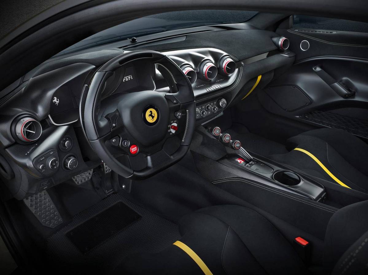 車身部分,Ferrari F12tdf運用大量碳纖維材質,使得車身重量比普通版本F12 Berlinetta輕上110公斤而達到1,415公斤。動力部分,Ferrari F12tdf搭載排氣量與F12 Berlinetta同為6,262cc的自然進氣V12引擎,透過精密的肚內強化與調校,最大馬力躍升為770HP,扭力也由原本的70.4kgm提升至71.8kgm,並且在轉速2,500rpm區間便可爆發出80%的最大扭力,使得Ferrari F12tdf在百里加速方面繳出2.9秒的優異成績,極速突破340km/hr,且由靜止加速至200km/hr僅需7.9秒,同時在自家Fiorano Circuit測試跑道繳出1分21秒的佳績,比普通版本F12 Berlinetta所達成的1分23秒快上許多,同時也緊追旗艦油電超級跑車Ferrari LaFerrari所創下的1分19秒7,數據令人驚艷!