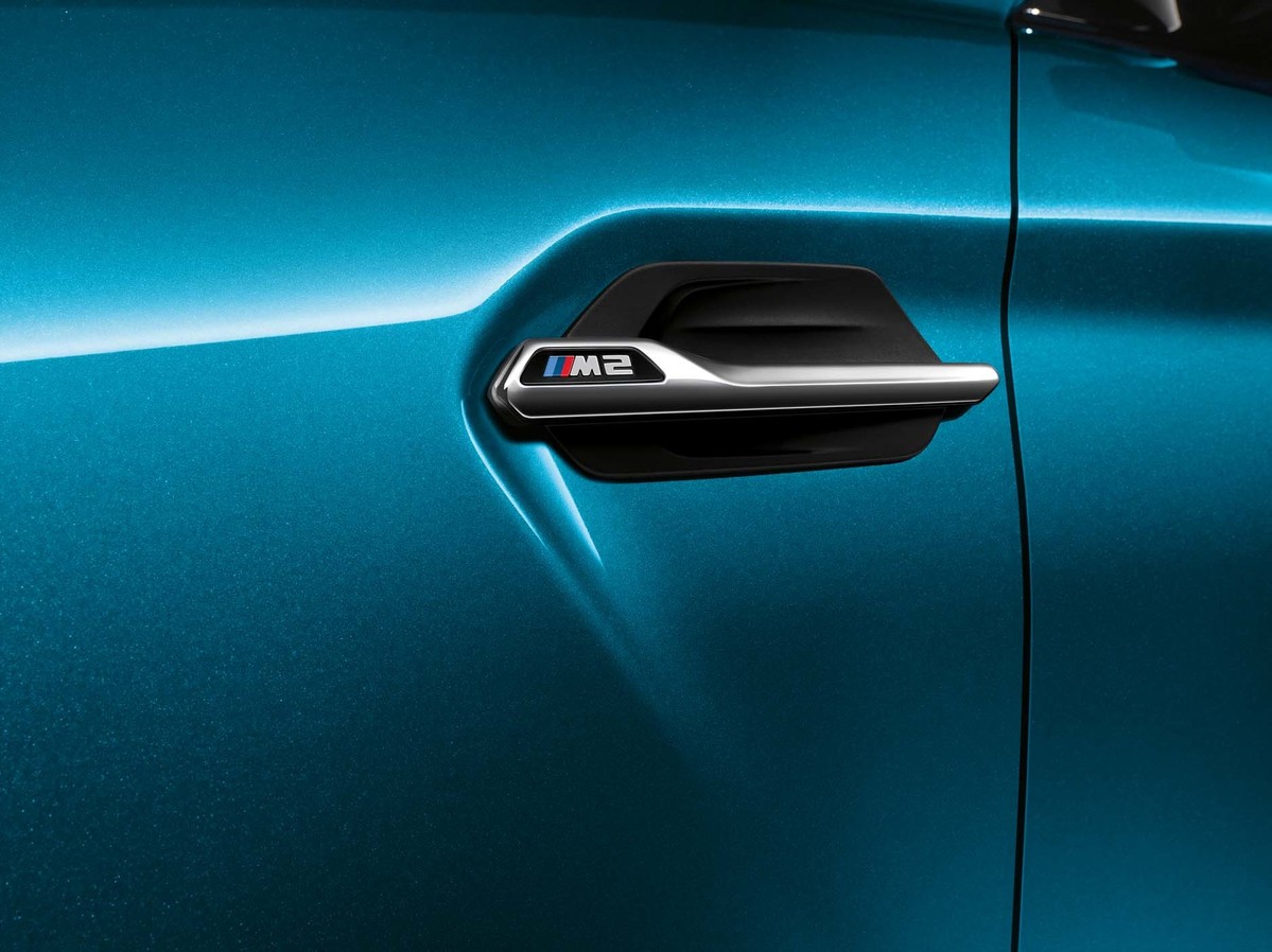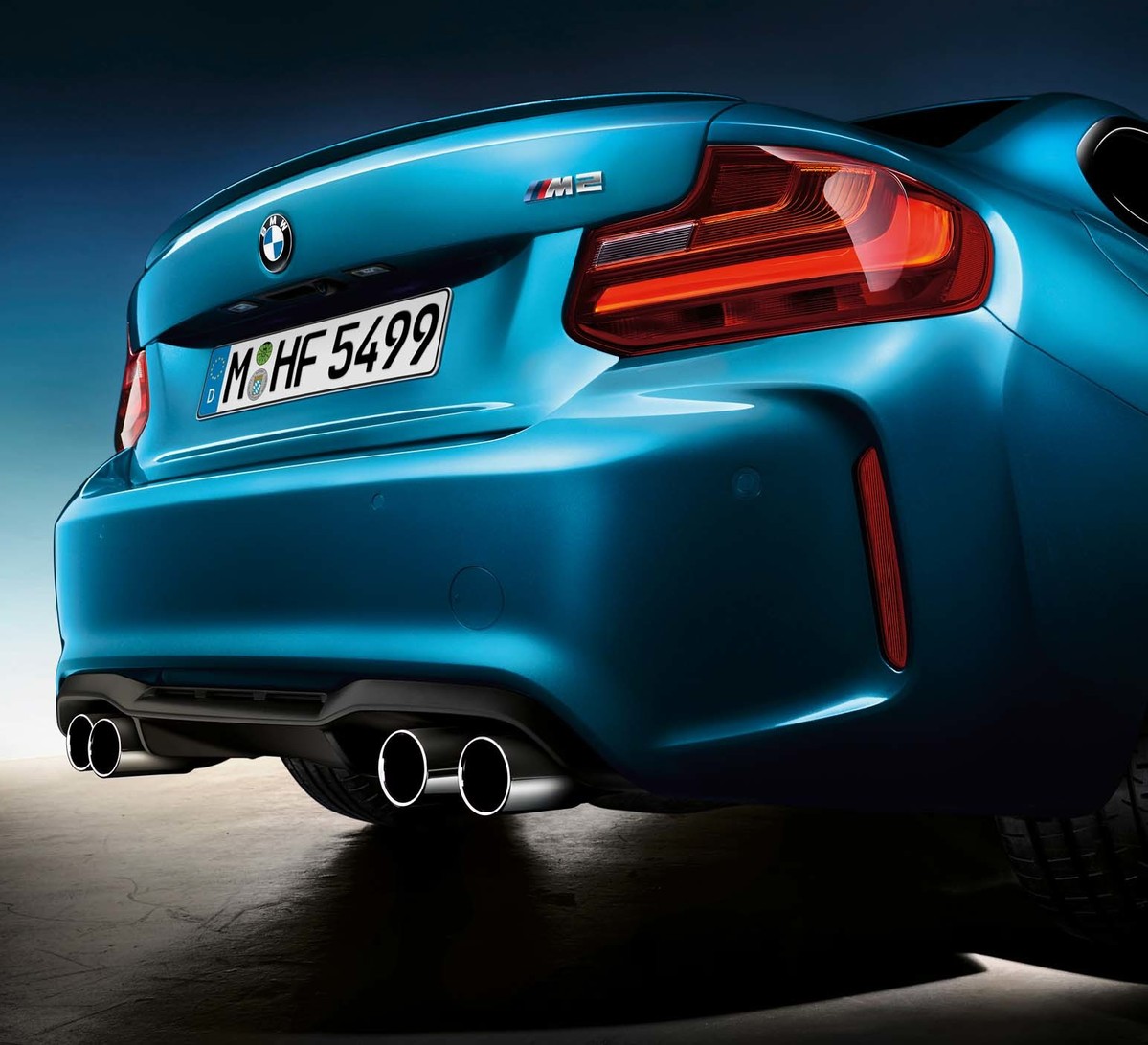 外觀部分,猶如E82世代當中M135i與1M Coupe的關係,BMW M2擁有比M235i寬大不少的前後葉子板,車體在前軸部分增寬5.3公分,後軸更是加寬足足有7.9公分,並容下尺寸前19x9.0J、後19x10.0J的輕量化19吋前後配輪圈搭配前245/35ZR19、後265/35ZR19的專用Michelin Pilot Super Sport高性能跑胎,兼顧日常行車舒適性與賽道操駕穩定性。
