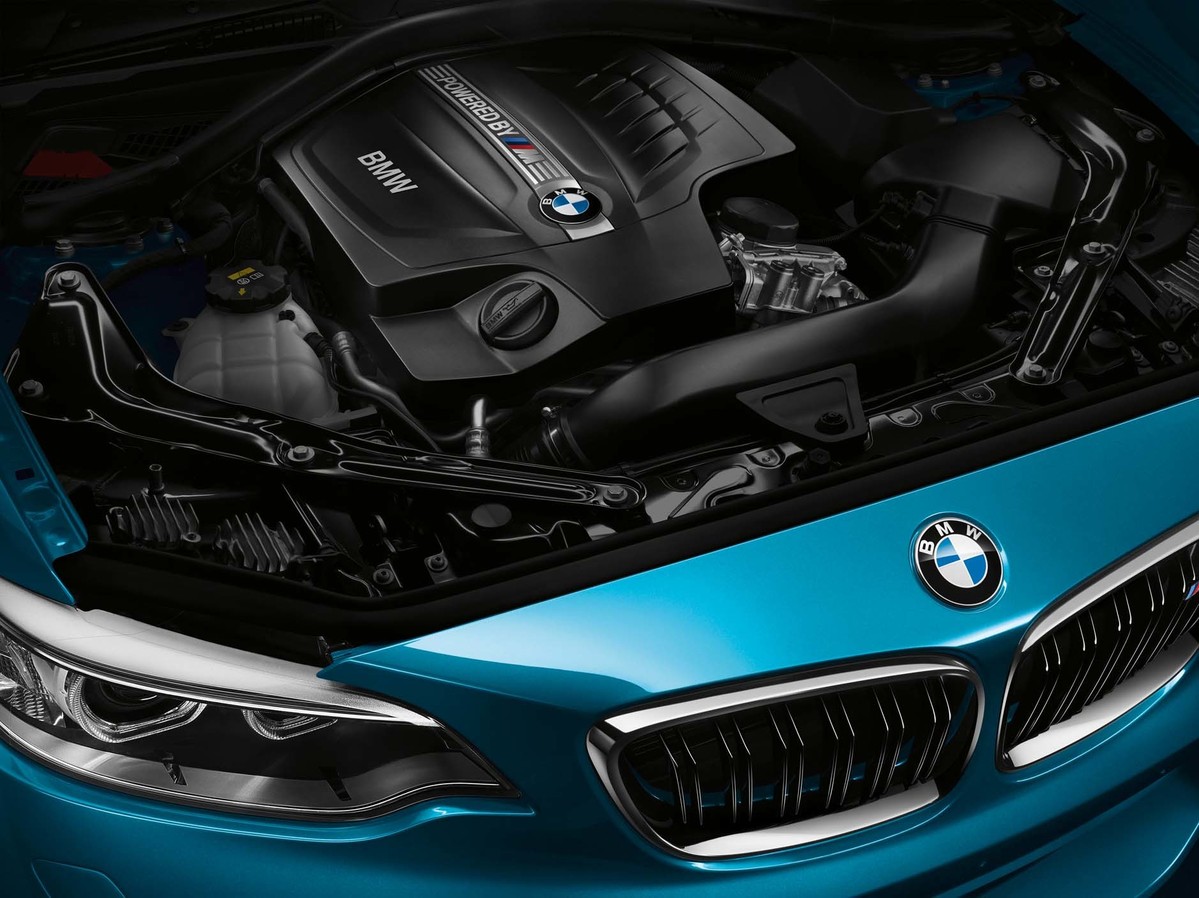 動力部分,2016年BMW M2搭載3.0升直列六缸渦輪增壓引擎,納入精準直噴系統、水噴射系統、Double-VANOS、Valvetronic與源自M3/M4的活塞與連桿,造就其365HP的強大動力,扭力峰值47.3kgm則在1,400rpm便湧現,引擎輸出比M235i多出45HP,同時也很禮貌性地比同門師兄M3/M4少了60HP。