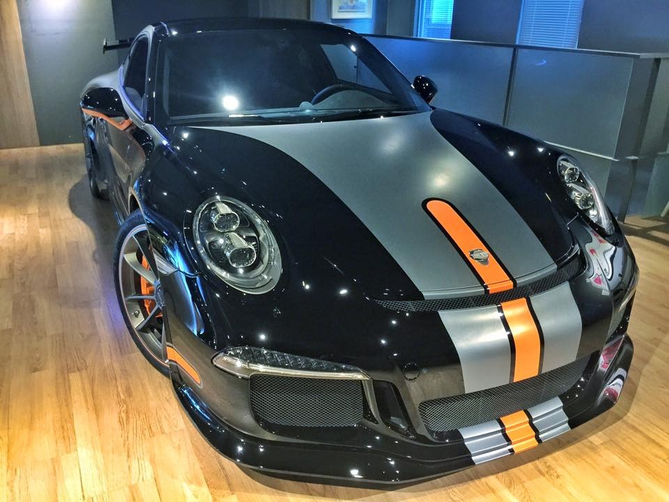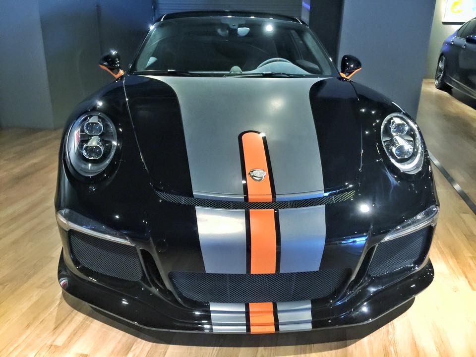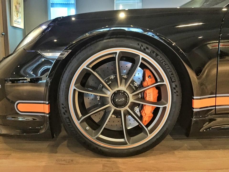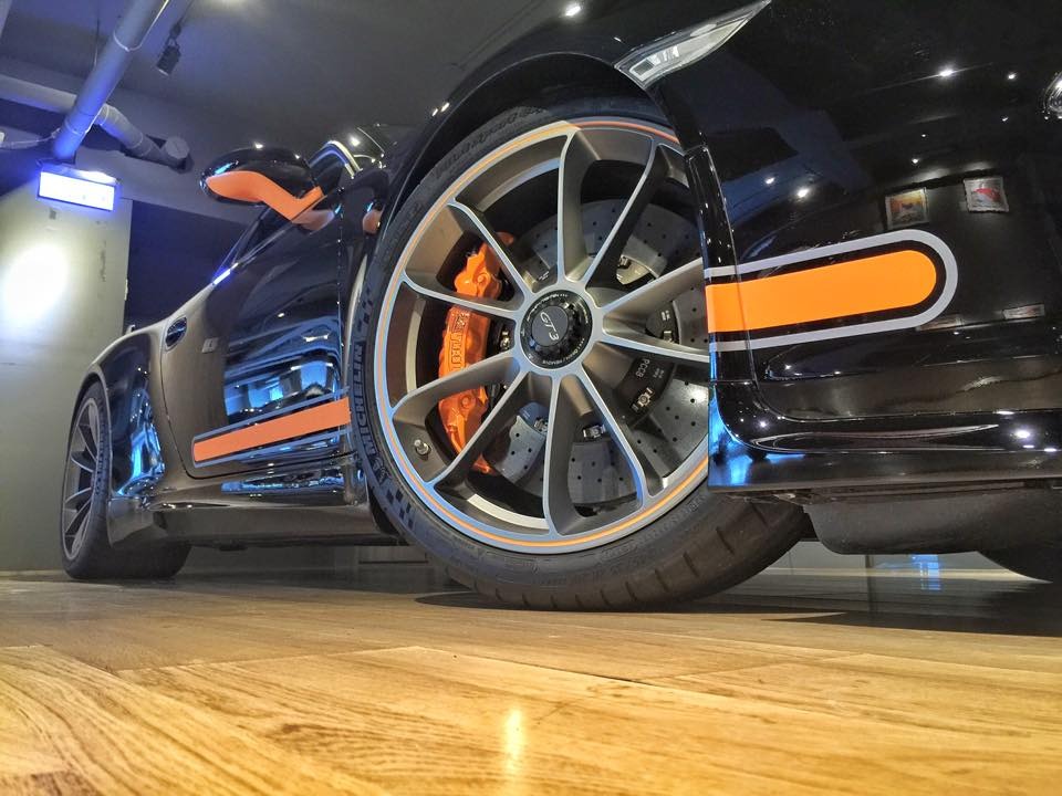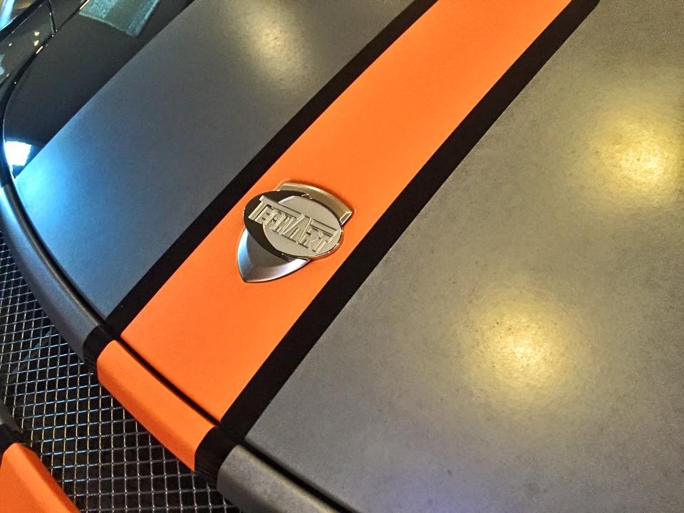 外觀部分,這部TechArt精裝版本Porsche 991 GT3配有TechArt專屬側裙套件與後擋風玻璃擾流板,另外將原廠GT3前下巴與後下擾流板等處施以與車身相同的黑色烤漆,再加上炯炯有神的全LED頭燈組、車身同色處理噴水頭、灰色/橘色搭配的車身飾條與前行李箱蓋TechArt盾牌,沈穩內斂、別具風味。底盤部分,配有原廠車頭抬升系統的它則是沿用991 GT3原廠輕量化輪圈搭配TechArt陶瓷煞車系統。