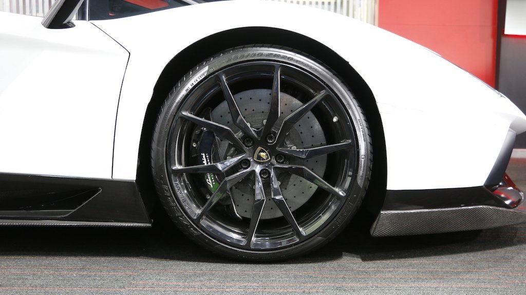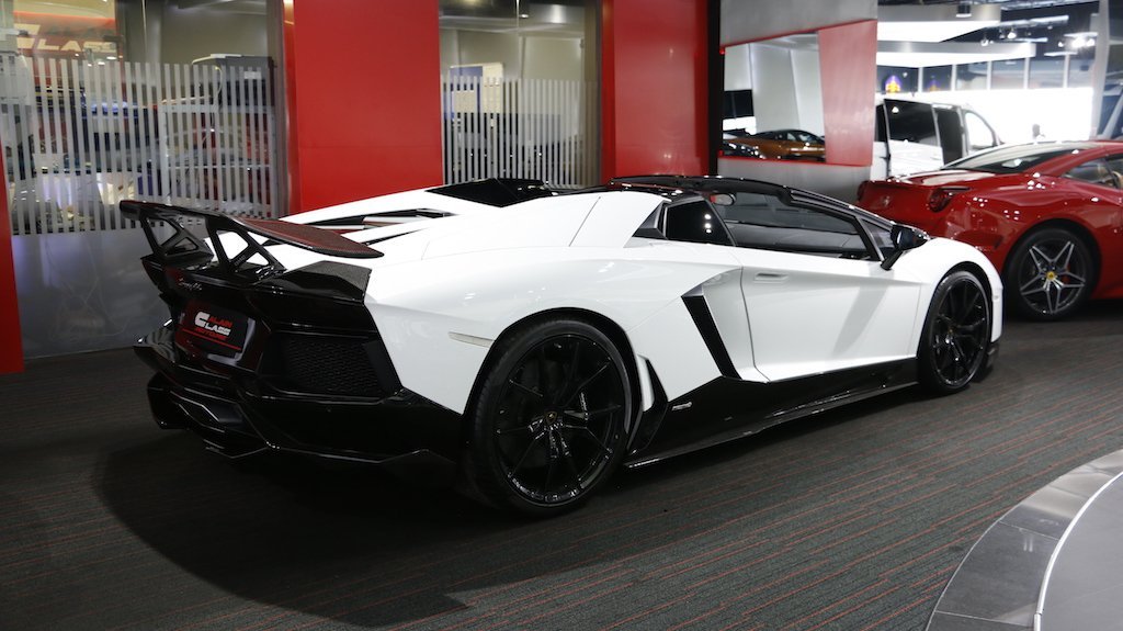 杜拜知名車商Al Ain Class Motors日前祭出一部車況優異的2014年Lamborghini Aventador LP700-4,車身採用簡單俐落的白色塗裝搭配原廠鍛造Dione前20吋、後21吋的亮面黑色輪圈,同時換有知名品牌Novitec Torado的碳纖維空力套件,包含前下巴、設計與眾不同的側裙組、後下擾流板與後上擾流尾翼等部品,質感與跑格兼備。