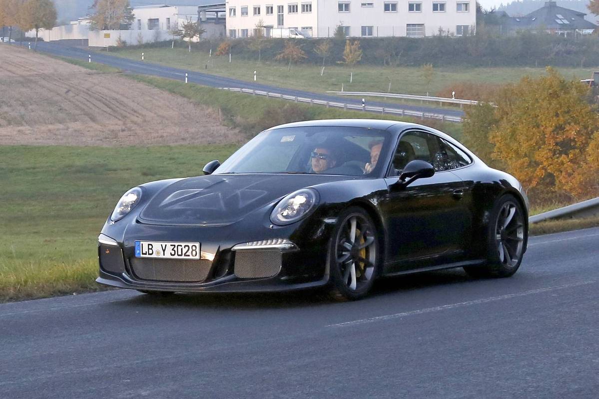 我們都知道頗受好評的Porsche 991 GT3並沒有提供搭配純手排變速箱的車型,僅統一配置PDK雙離合器變速箱,縱使效率極佳,但對於熱愛人車一體操駕感受的玩家們而言,還是少了一點趣味。約莫兩個禮拜前,車壇開始傳出Porsche即將打造一部取名「911 R」的純手排限量車款,同時將會與991 GT3共用諸多車體結構。如今看來這項消息的可信度極高,因為日前國外媒體便在路上擄獲一部掛著德國路德維希堡(Ludwigsburg)合法車牌的測試車。從外觀看來,這部黑色Porsche測試車配著GT3原廠輪圈、前保桿與PCCB陶瓷煞車系統,同時排氣管採用與GT3相同的中出雙管式樣,就像拆除後擾流尾翼的991 GT3。