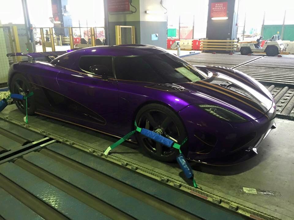 前陣子便有傳聞指出,中國市場將會出現一部由瑞典超級跑車廠Koenigsegg特別量身訂製的Agera,動力將會達到1,400HP之譜,並且會配有專屬設計的空力套件。不過,截至目前為止,我們尚未得到任何確認過的消息。倒是,前幾天網友在上海(Shanghai)機場貨櫃區擄獲一台亮眼紫色塗裝的Koenigsegg Agera R,而如果各位有長期關注中國超跑動態,便會知道這部型號Agera R Zijin其實早在2013年便已抵達中國。
