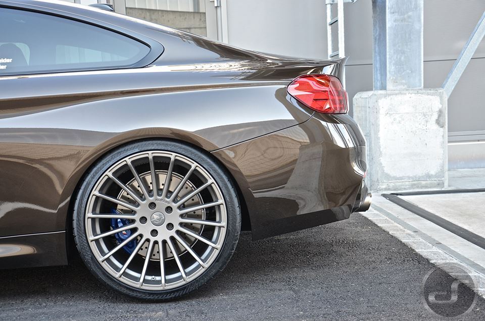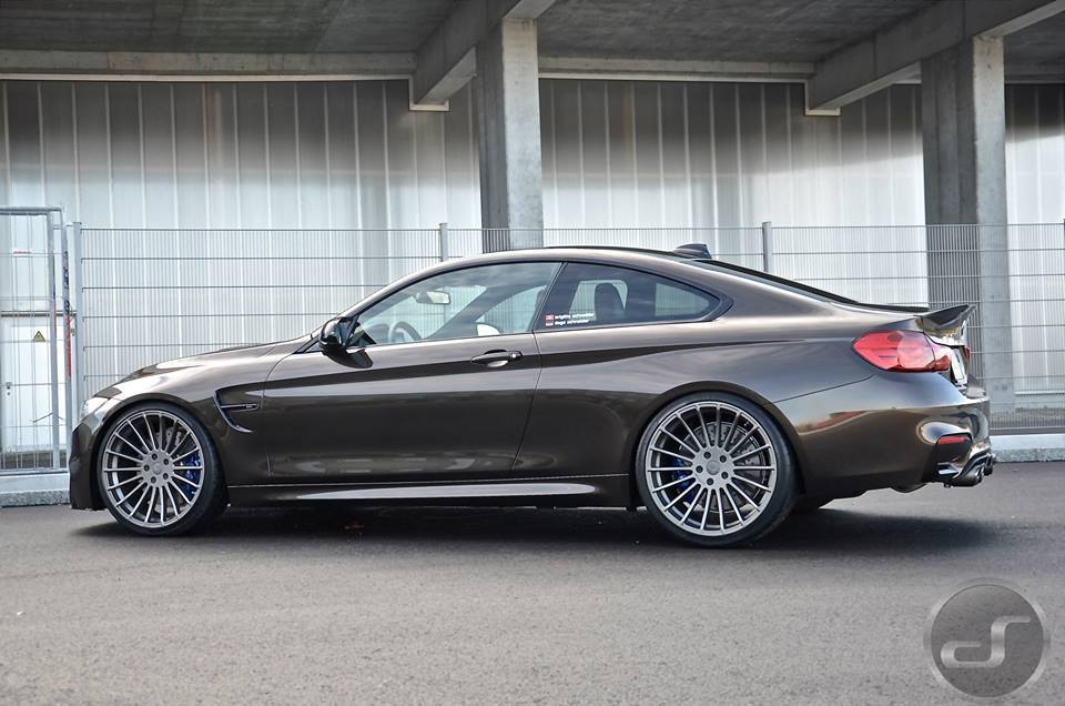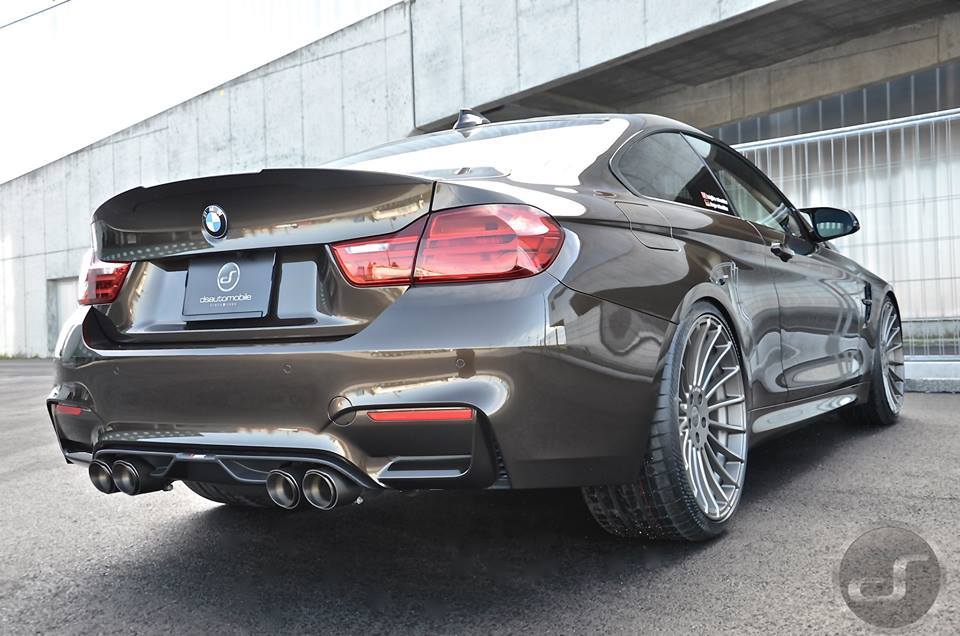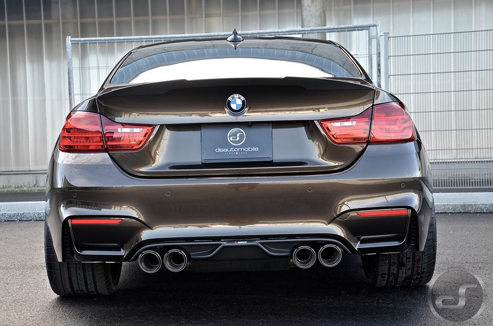 今天帶給各位一部由改裝廠DS Automobile所操刀的BMW F82 M4,車身採用特殊的Pyrit Braun金屬棕色塗裝,換裝知名品牌Hamann、型號EVO的放射狀槍灰色輪圈,另外搭配前下巴與後擾流尾翼,排氣管則是選用Akrapovic鈦合金款式搭配碳纖維尾段,再以Akrapovic專用後下擾流板稍加點綴車尾線條,營造出相當特殊的視覺感受。