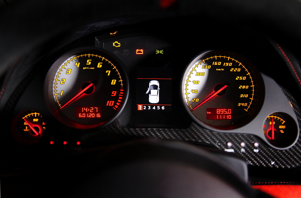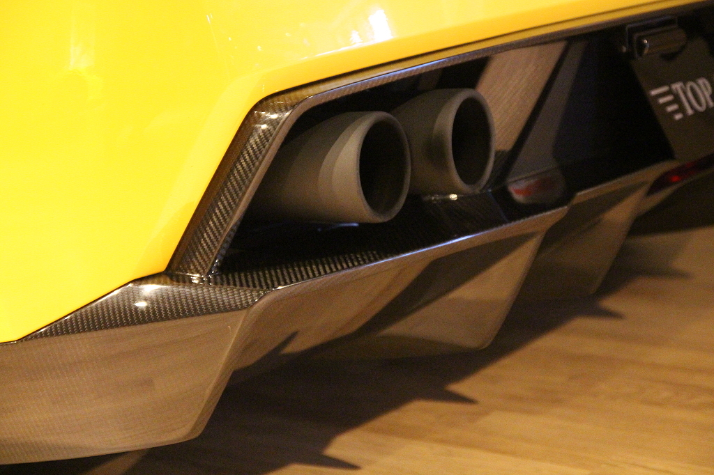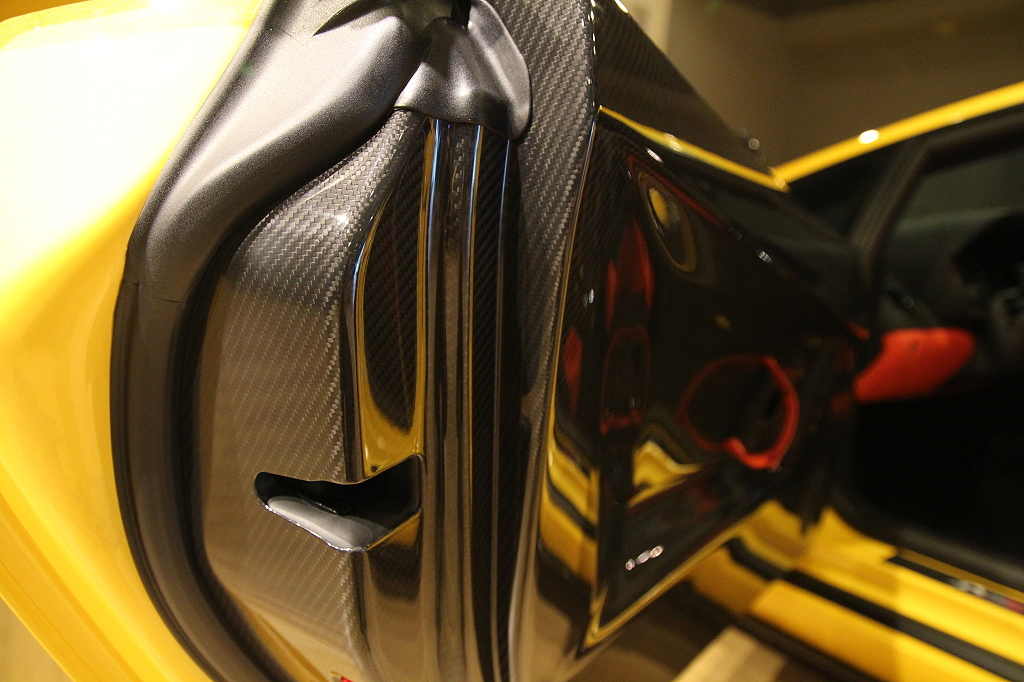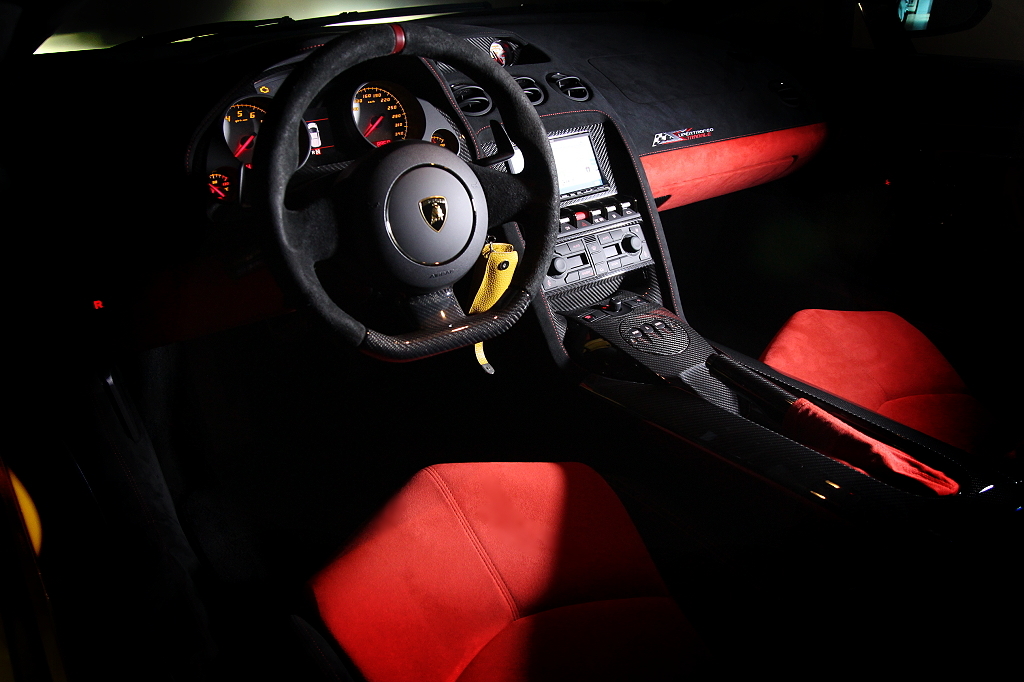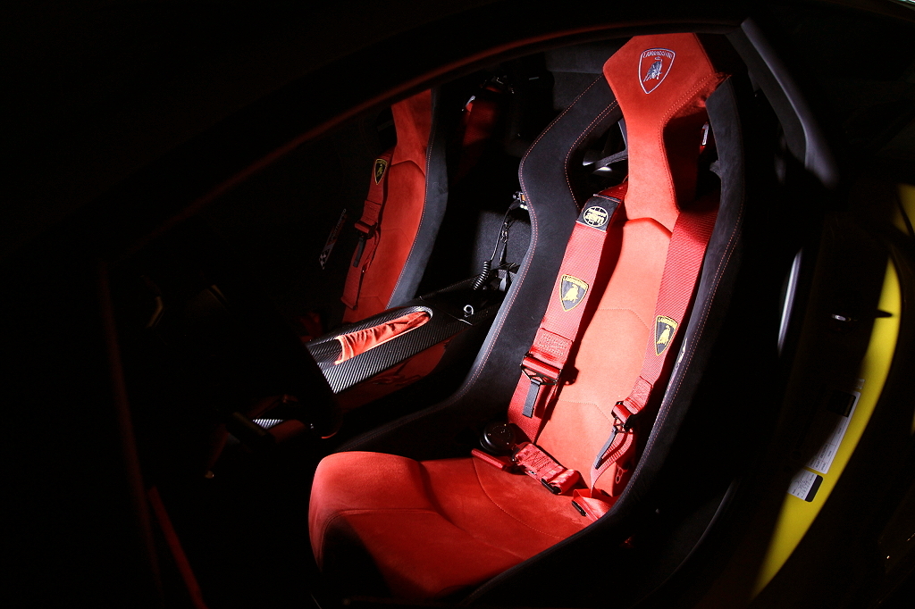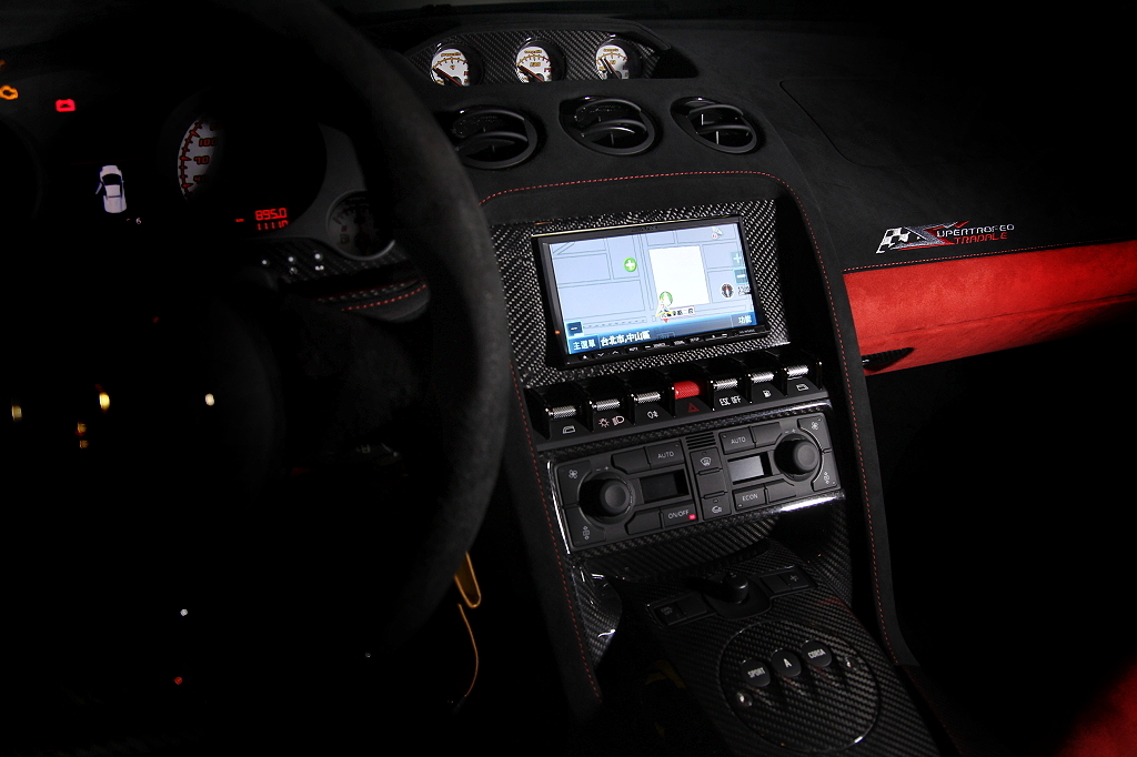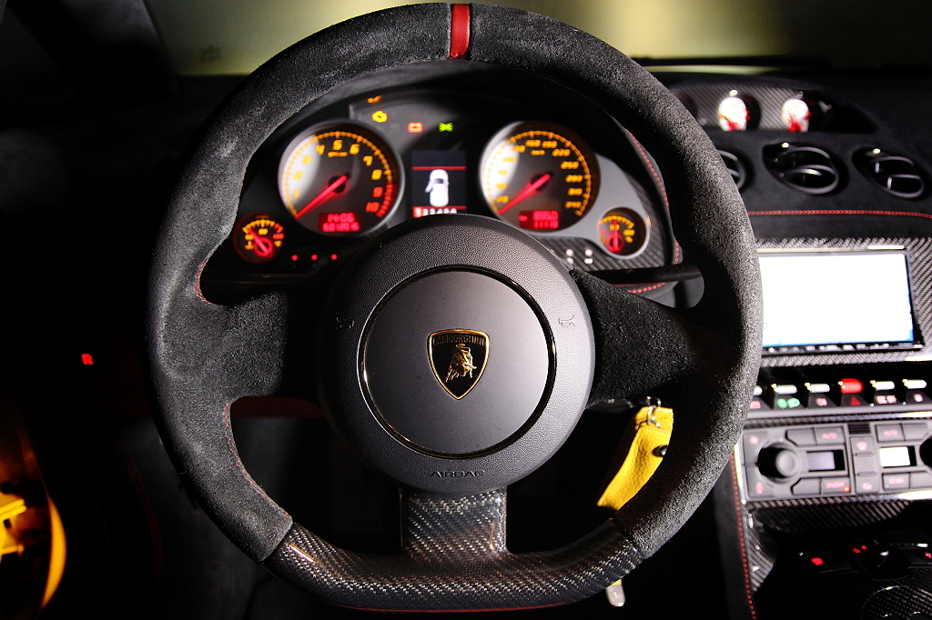 內裝部分,這部黃色限量車款配有四點式紅色安全帶、內裝鍍鉻/碳纖維套件、原廠防滾籠、Super Trofeo Stradale專屬腳踏墊、旅遊套件、倒車顯影系統與中文衛星導航系統,車主也另外選配了標配清單中所沒有的音響系統,當年總價約莫新台幣1,920萬元。