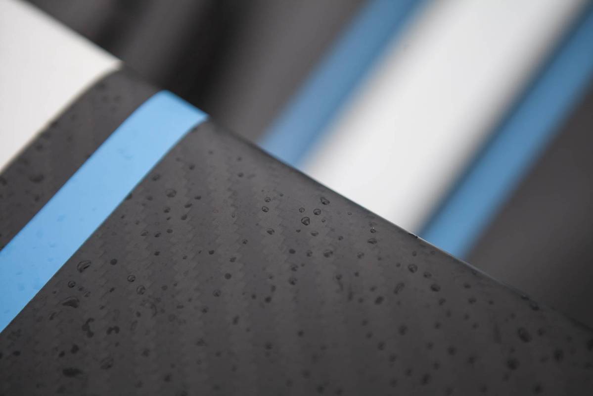 車身部分,Pagani Huayra BC除了車頂與普通版本Huayra相同之外,其他車身鈑件皆經過重新設計,舉凡前下巴、醒目高聳的後擾流尾翼、後下擾流板與側裙組等,將主動式空力套件詮釋得更完整,有效增加車身穩定性與散熱效果。