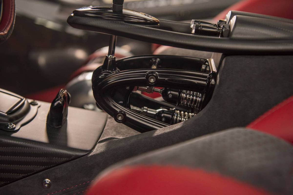 內裝部分,Pagani更是在Huayra BC車艙中下足功伕,以電子手煞車取代原本的握柄,同時換上全新賽車座椅,更以高檔的灰色與紅色真皮包覆,搭配環伺車內的碳纖維飾板,整體質感一流。