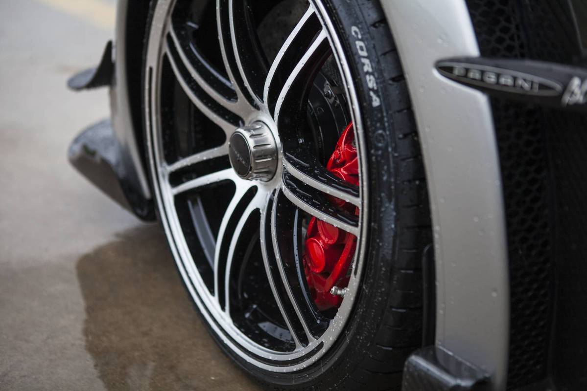 針對Pagani Huayra BC的全新懸吊系統,原廠宣稱這是道路版量產車中最有效率且最輕的產品,係由輕量化航太等級Hi-Forg材質打造,重量比一般材質輕上25%。另外,Huayra BC身上的陶瓷煞車系統也用上新款Brembo煞車卡鉗,畫面中的全新造型輪圈尺寸為前20吋、後21吋的配置,搭配前255/30ZR20、後355/25ZR21的Pirelli P Zero Corsa高性能跑胎,若要上賽道駕駛,原廠也提供前19吋、後20吋的較小尺寸輪圈讓車主搭配選用。