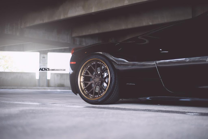 這組輪圈型號為ADV7 Track Spec SL,前輪尺寸為20吋9J,後輪則為21吋12.5J,中心採用古銅色塗裝,外圍採用特殊的鋁合金刷痕搭配消光金的塗裝組合,線條與458車身融為一體。