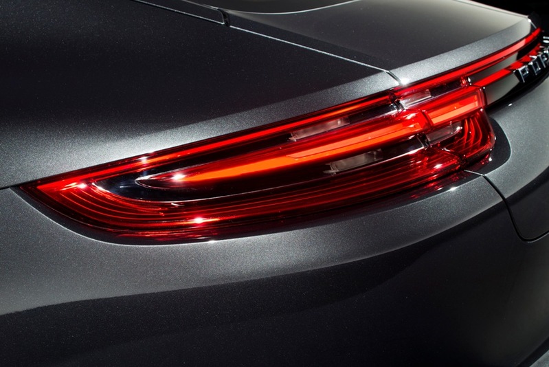 Panamera是一部四門GT,而非傳統的轎車,這一點從車尾看去比其他任何角度都更清楚。由車頂、車頂柱、車窗表面構成的「座艙」由一個強大且寬闊的車肩支撐。無庸置疑的,Panamera就是一部不折不扣的跑車。能夠辨識其車尾特徵的最顯眼部件,莫過於內建4點式煞車燈的立體造型LED尾燈。該尾燈由一條狹長的LED細燈連接而成,所有元件構成一個清晰可辨的夜間外觀。可伸展的擾流尾翼完美且優雅地整合至標準配備電動開闔功能的行李廂,並採用車身同色烤漆處理。在Panamera Turbo車型上,尾翼還會再升起時展開,而獲得更大的表面積。車尾下側部位有一個左右整合至排氣系統不銹鋼雙出尾管的下擾流造型。