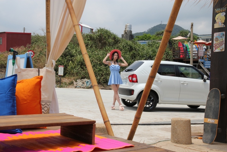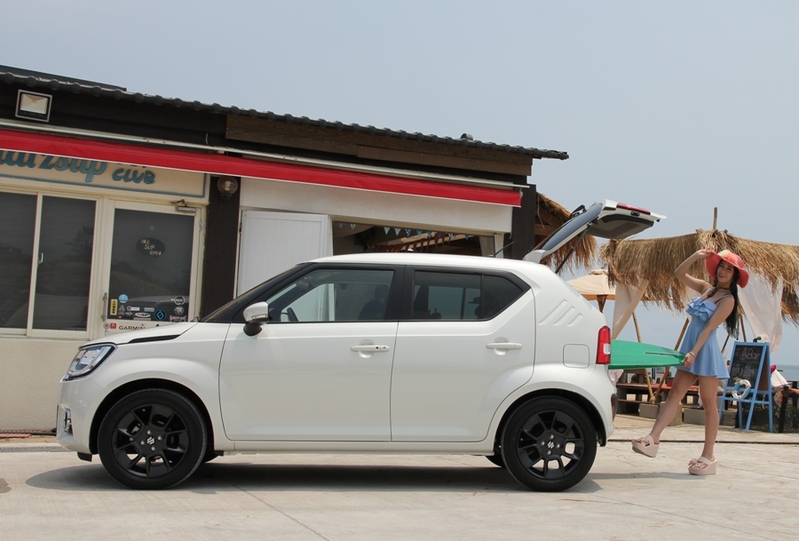 愛佳奈剛考上重機駕照,就應該知道她很敢於嘗試一般女生不敢嘗試的活動,雖然膚色很白的她,卻想要學學衝浪,試車當天,她讓衝浪專家鍾年巡把短版衝浪板放進了Suzuki Ignis,就算沒有車頂架,在放倒後座及副駕駛座的椅背後,短版衝浪板順利置入。在要乘坐五人又能放置行李的狀況下,也許Suzuki Ignis做不到,但是以軸距只有