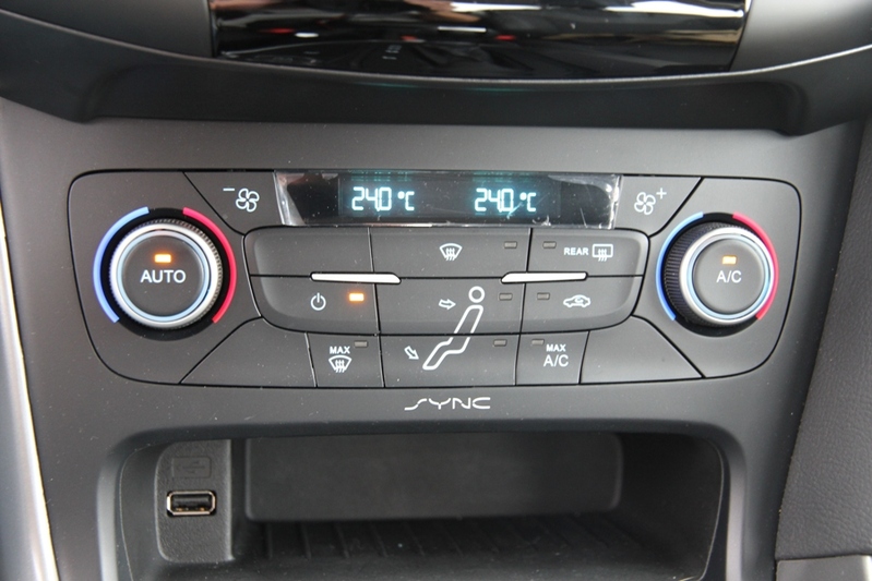 在之前雖然Focus有很多的電子主動安全行駛配備,可是卻在這個迷戀被動安全及影音配備當道的台灣市場,沒有引起太多回響,所以這回在Focus四門及五門的Ecoboost 180車型已經補上了,首先是五門Ecoboost 180頂級運動型升級SYNC3影音系統,在8吋LCD觸控螢幕上整合了衛星導航、車載通訊系統並適用Apple及Android、聲控、藍牙、USB、DVD及倒車顯影系統,四門的Ecoboost 180是配備6支喇叭,五門的則是配備9支喇叭,有著SONY字樣的鋼琴鏡面中控台質感相當不錯,恆溫空調還是左右雙區獨立。