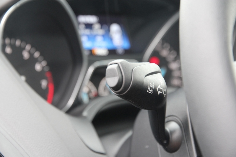 五門Ecoboost 180頂級運動型才有的車道偏移輔助開關位於方向盤左側的方向燈桿上。